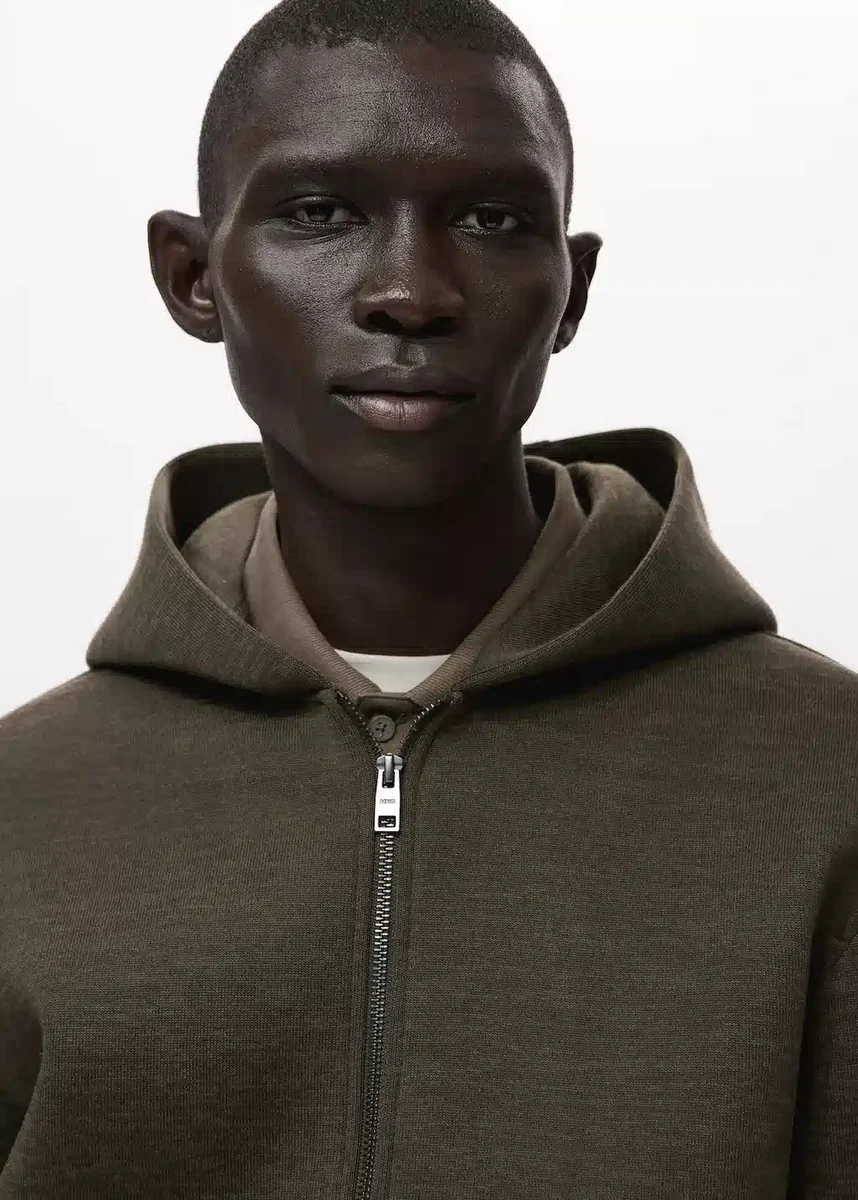 Regular fit. S kapucí. Bavlněná směsová tkanina. Dlouhé rukávy. Kapsy. Zapínání na zip vpředu
