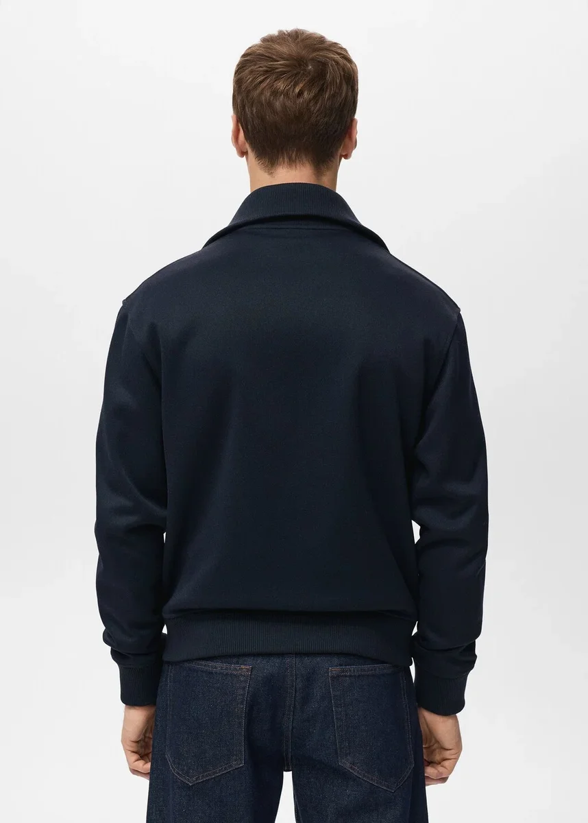 Regular fit. Límec s klopami. Žebrované lemy. Dvě boční kapsy. Dlouhé rukávy s elastickými manžetami. Dvoucestný zip.