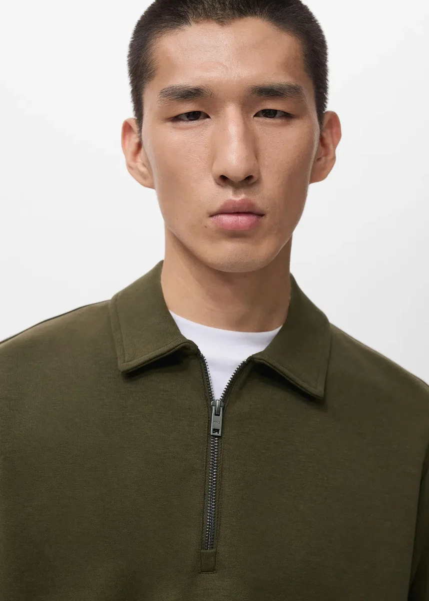Směs bavlny. Regular fit. Rolák se zapínáním na zip. Dlouhé rukávy s elastickými manžetami. Rovný lem.