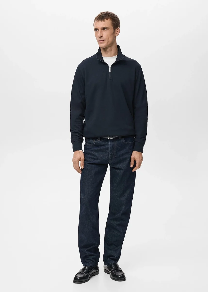 Regular fit. Směs bavlny a viskózy. Rolák se zapínáním na zip. Dlouhé rukávy. Rovný lem.