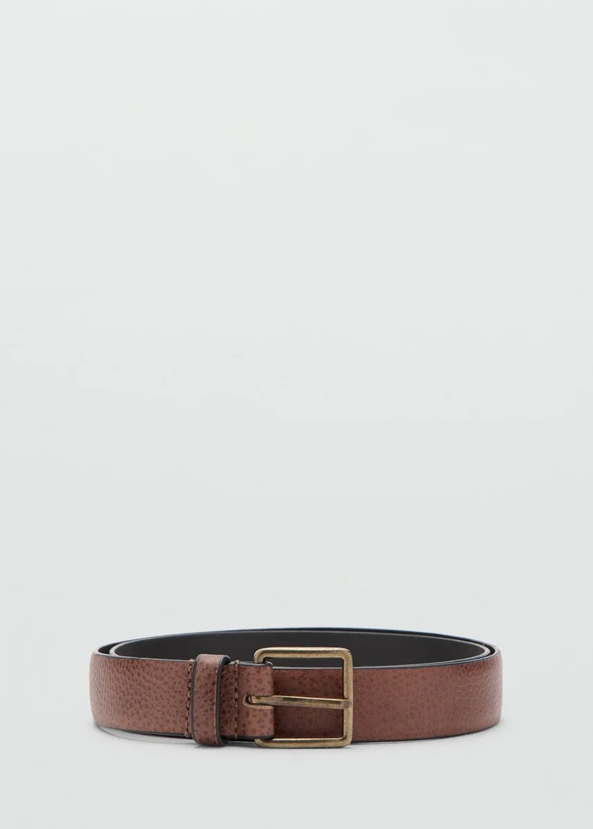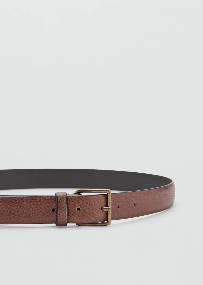100 % hovězí kůže. Velmi hladká kůže. Kovová přezka. Perforace pro volné nastavení velikosti v obchodech MANGO