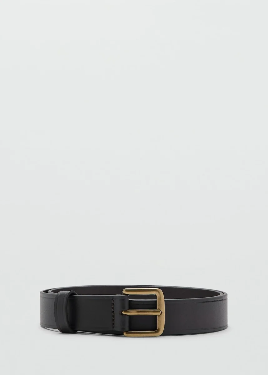 Perforace pro volné nastavení velikosti v obchodech MANGO. Kontrastní kovová přezka. 100 % hovězí kůže