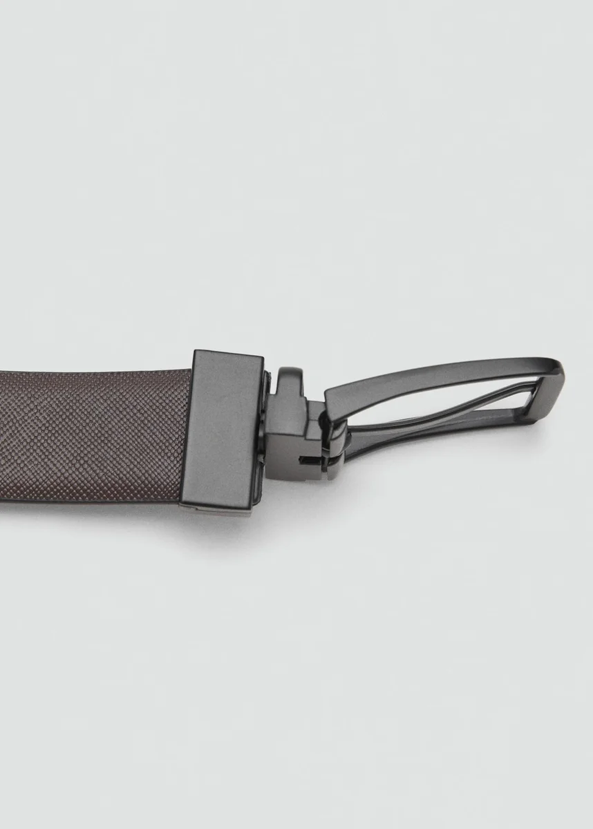 100% hovězí kůže. Čtvercová kovová spona. Perforace pro volné nastavení velikosti v obchodech MANGO.