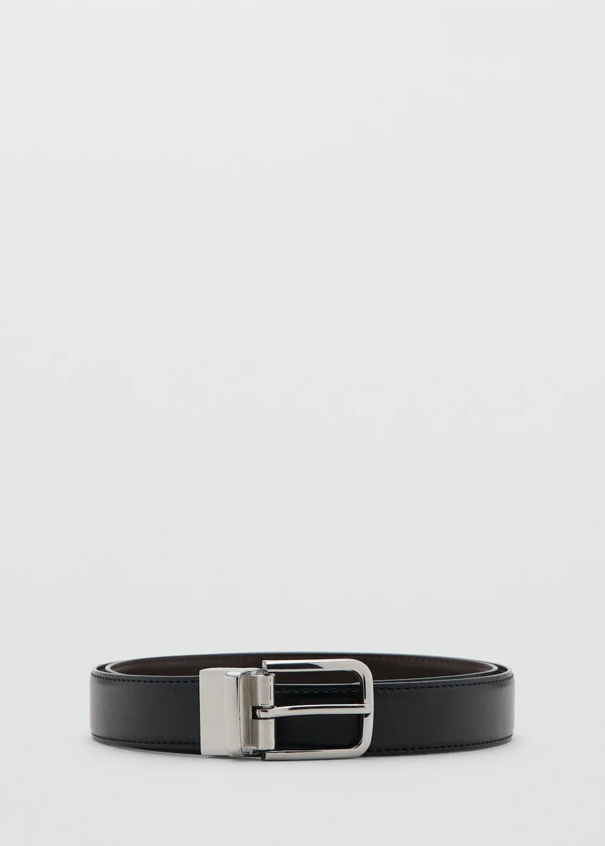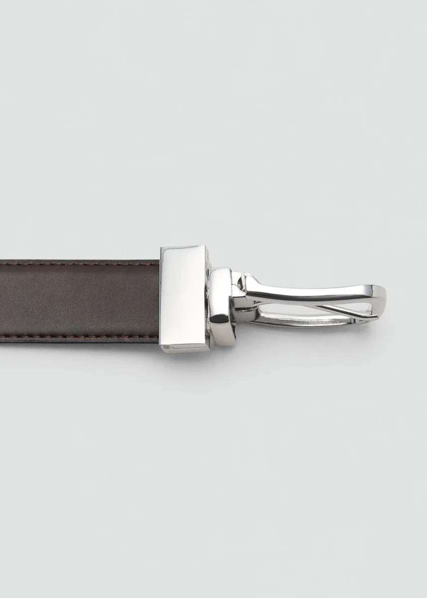 100 % hovězí kůže. Oboustranný design. Kontrastní kovová spona. Perforace pro volné nastavení velikosti v obchodech MANGO.