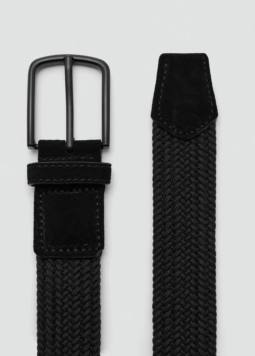 Kovová spona. Kožené detaily. Elastický materiál pro podporu a pohodlí. Perforace pro volné nastavení velikosti v obchodech MANGO.