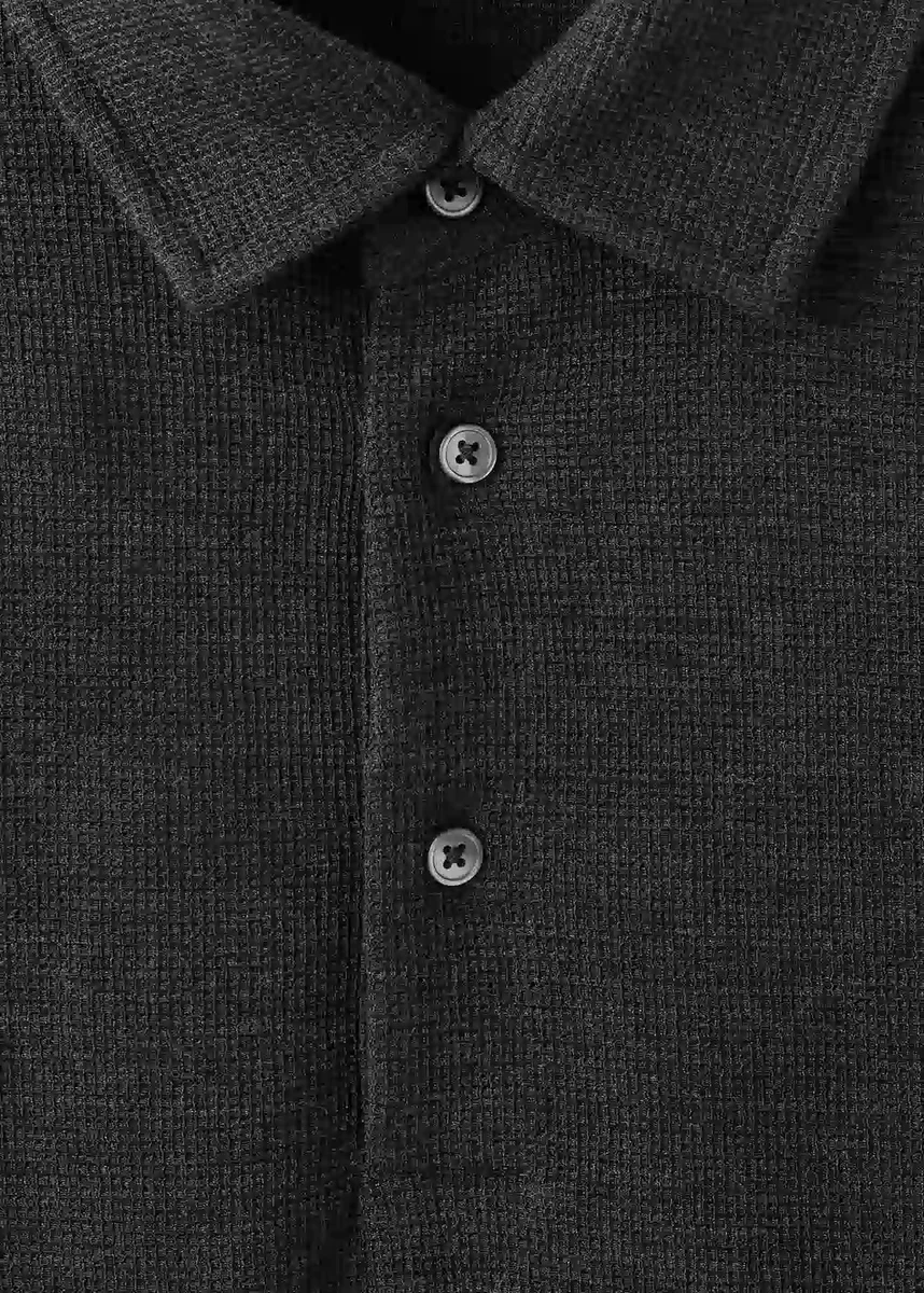 Slim fit. Tkanina s mikrostrukturou. Polo límec s knoflíkovým zapínáním. Dlouhé rukávy s knoflíkovými manžetami. Rovný lem