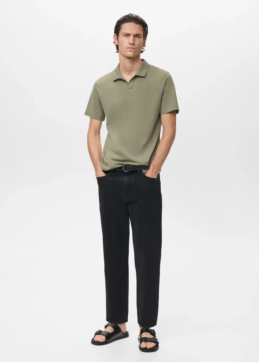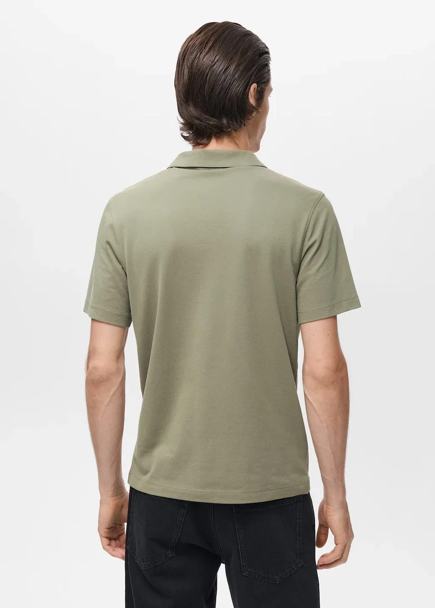 Slim fit. Bavlněná směsová tkanina. Polo tričko s límečkem bez knoflíků. Krátké rukávy. Rovný lem
