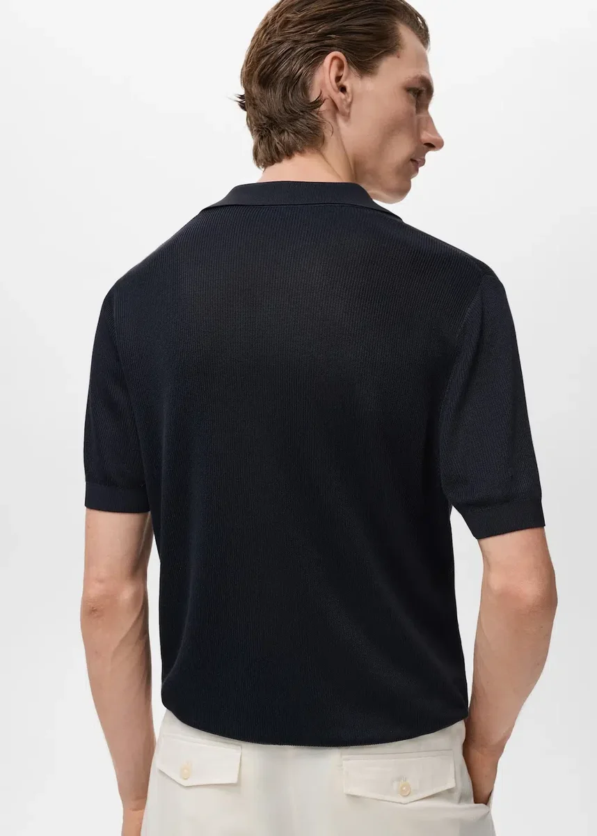 Jemně pletená tkanina. Bavlněná tkanina. Rovný střih. Krátké rukávy. Polo tričko s límečkem bez knoflíků. Žebrovaný límeček, rukávy a lem. Propagační produkt.