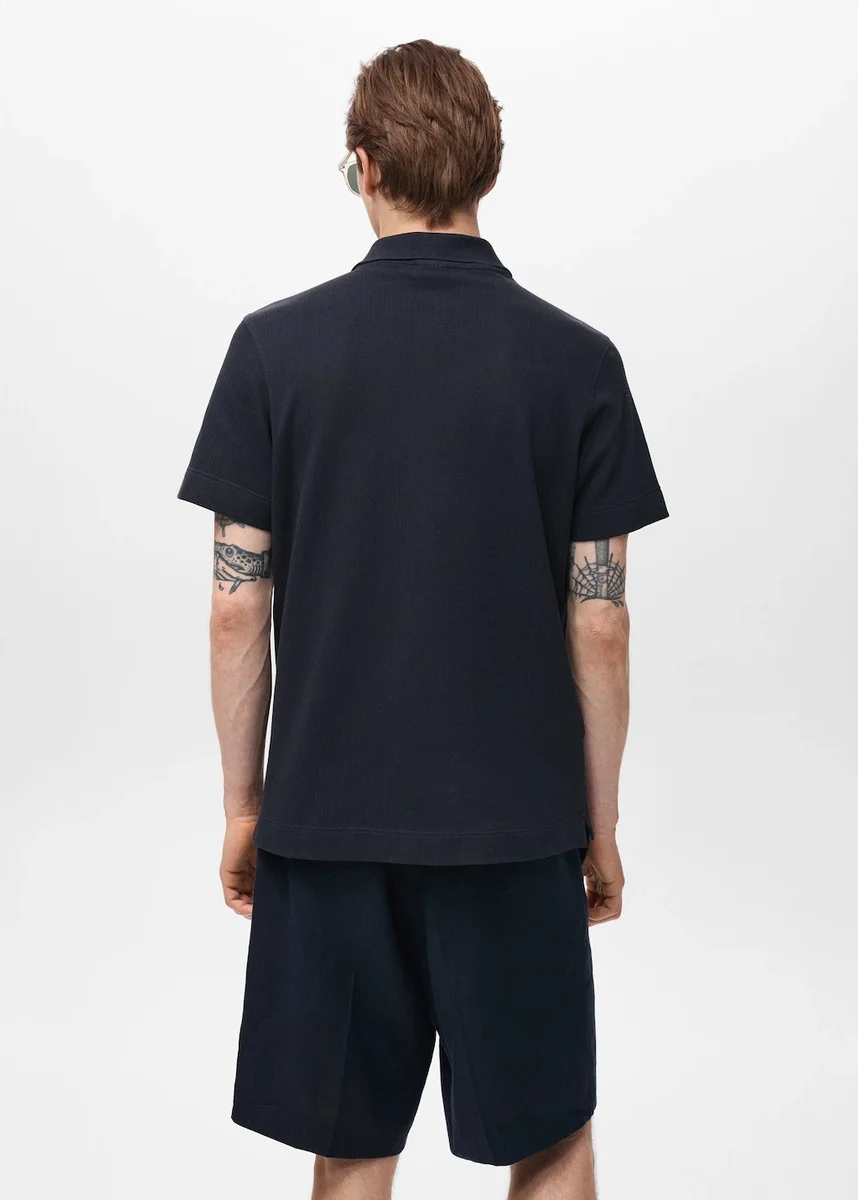 Běžný střih. 100% bavlna. Polo límeček. Krátké rukávy. Rovný lem. Malé boční rozparky na lemu.