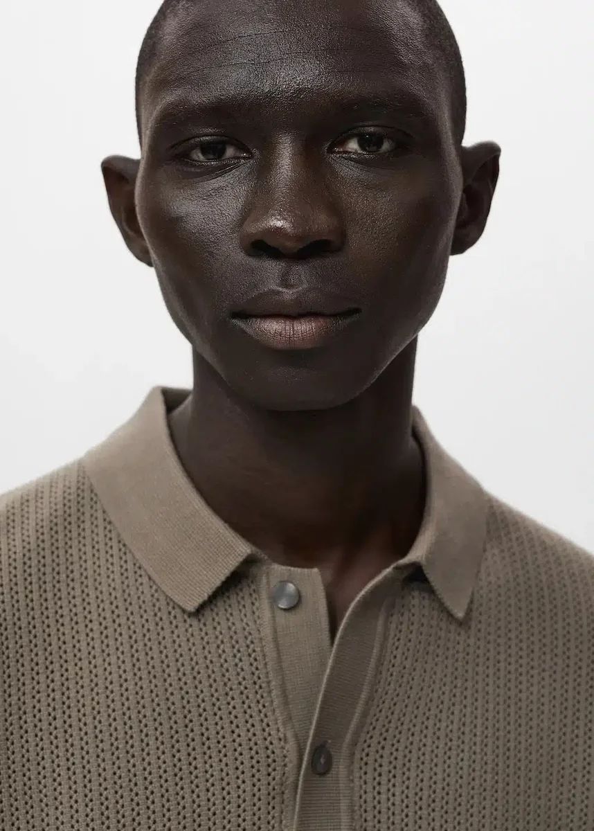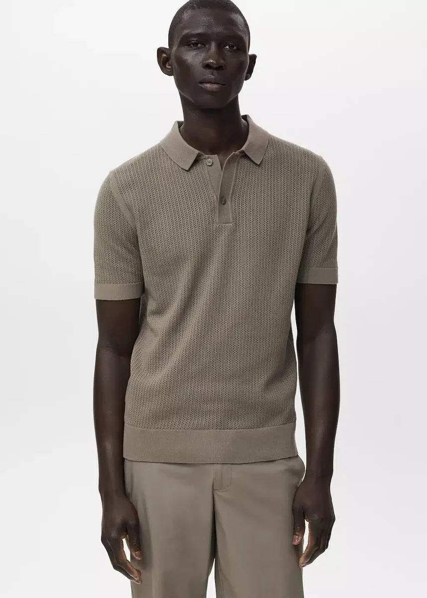 Pletené bavlněné polo tričko s krajkovým vzorem