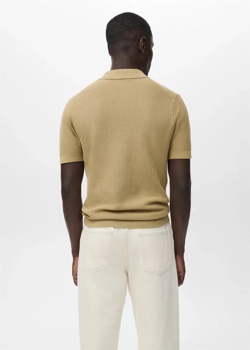 Černá barva je k dispozici výhradně online. Rovný střih. 100 % bavlna. Strukturovaná pletenina. Polo tričko s límečkem bez knoflíků. Krátký rukáv. Žebrovaný límeček, rukávy a lem.
