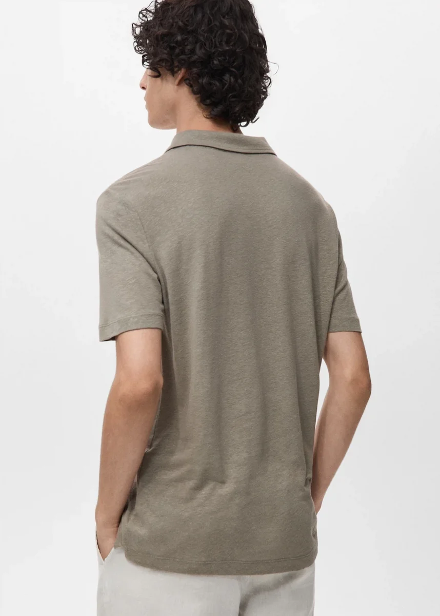 Štíhlý střih. Směsová látka s obsahem lnu. Polo límec se zapínáním na knoflíky. Krátký rukáv. Malé boční rozparky na lemu. Rovný lem. Slim fit. Propagační produkt
