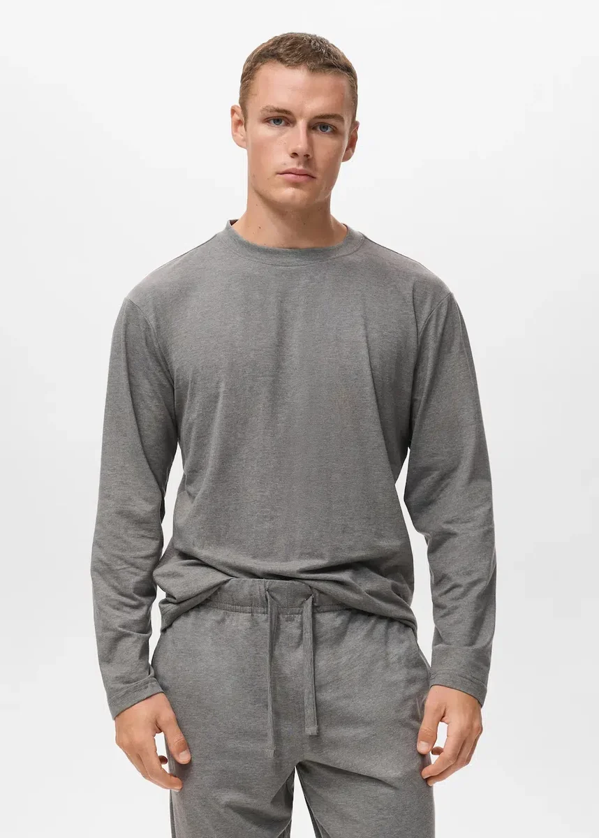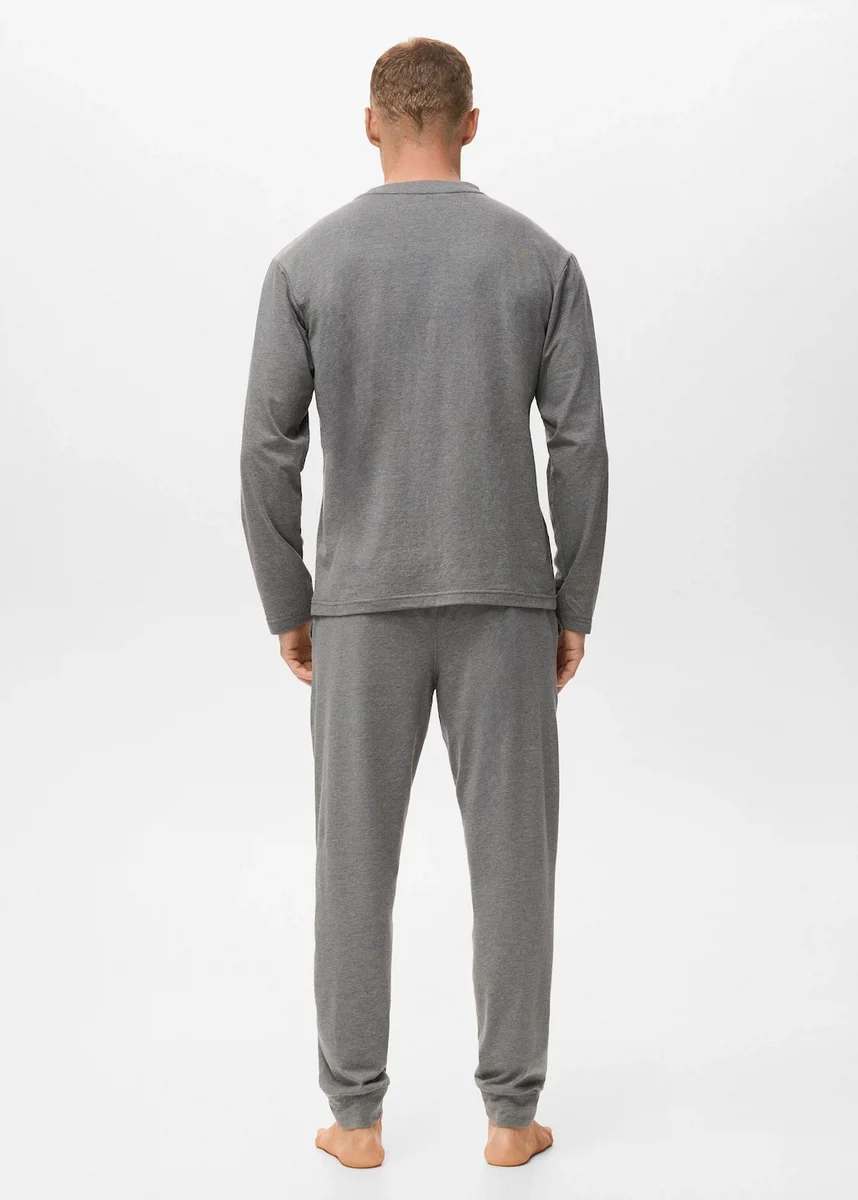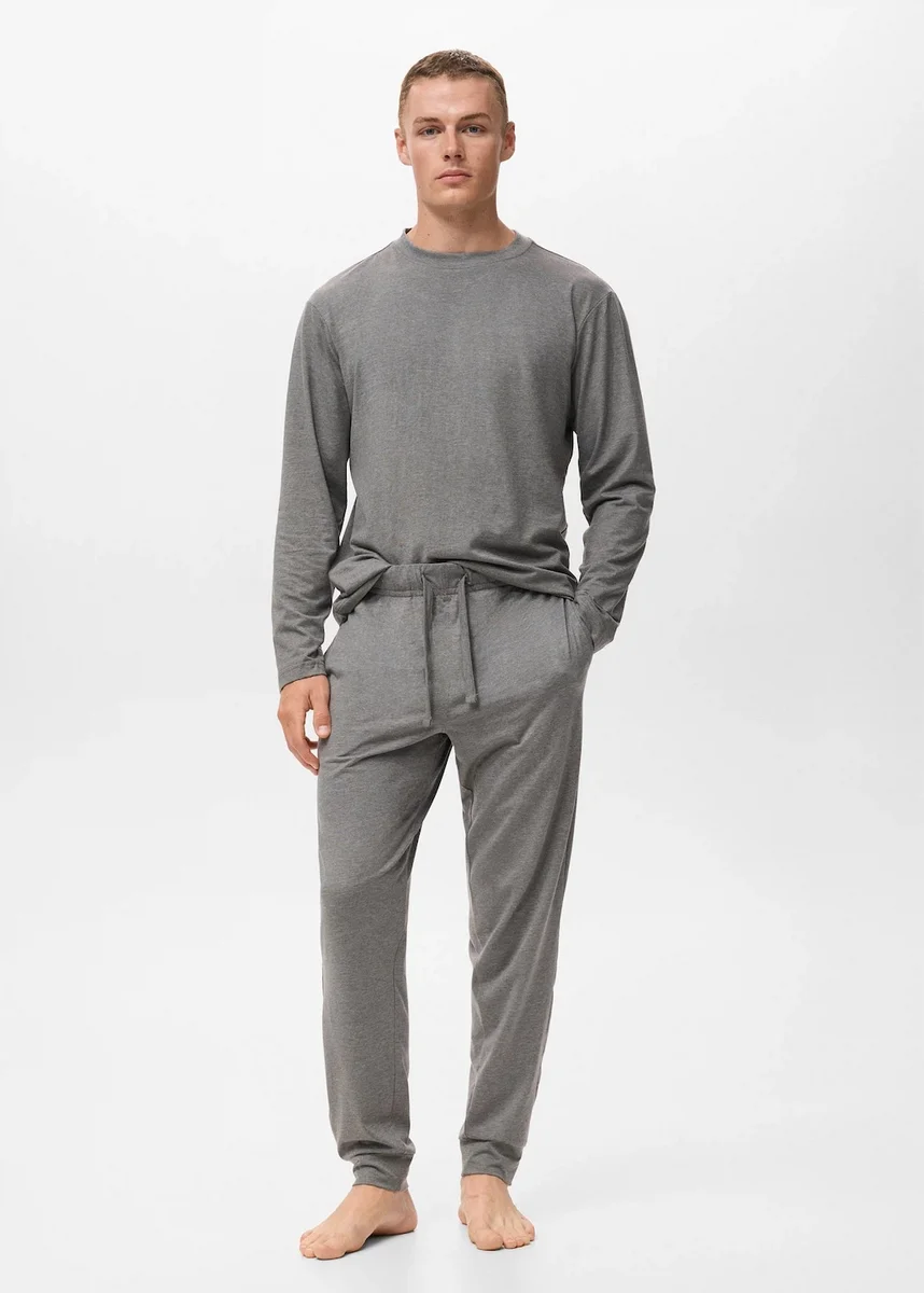 Bavlněná směsová tkanina. Sada trička a pyžamových kalhot. Tričko s dlouhým rukávem. Kalhoty s elastickým pasem a nastavitelnou stahovací šňůrkou. Součástí balení je taška na uložení oděvů. Černý pátek