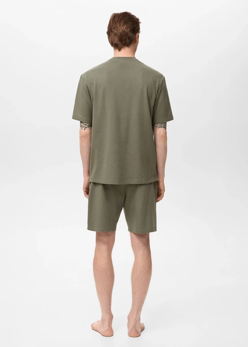 Bavlněná směsová tkanina. Tričko. Bermudské šortky s elastickým pasem. Stahovací šňůrka v pase. Součástí balení je taška na uložení oděvů.