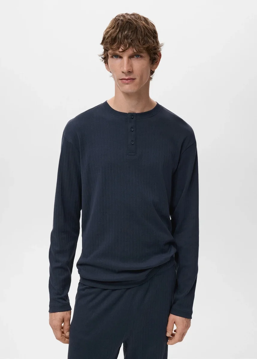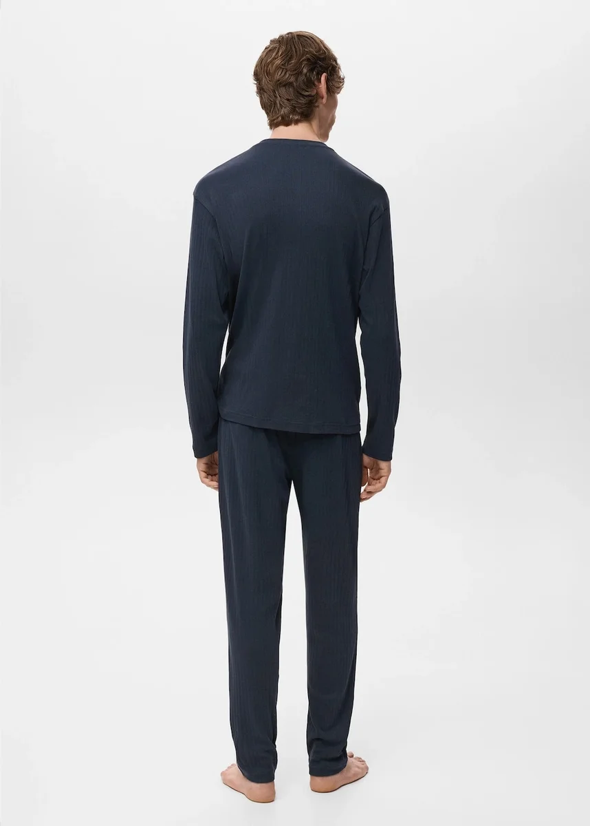 100% bavlna. Tričko s dlouhým rukávem a dlouhé kalhoty s elastickým pasem a nastavitelnou šňůrkou. Součástí balení je taška na uložení oděvů
