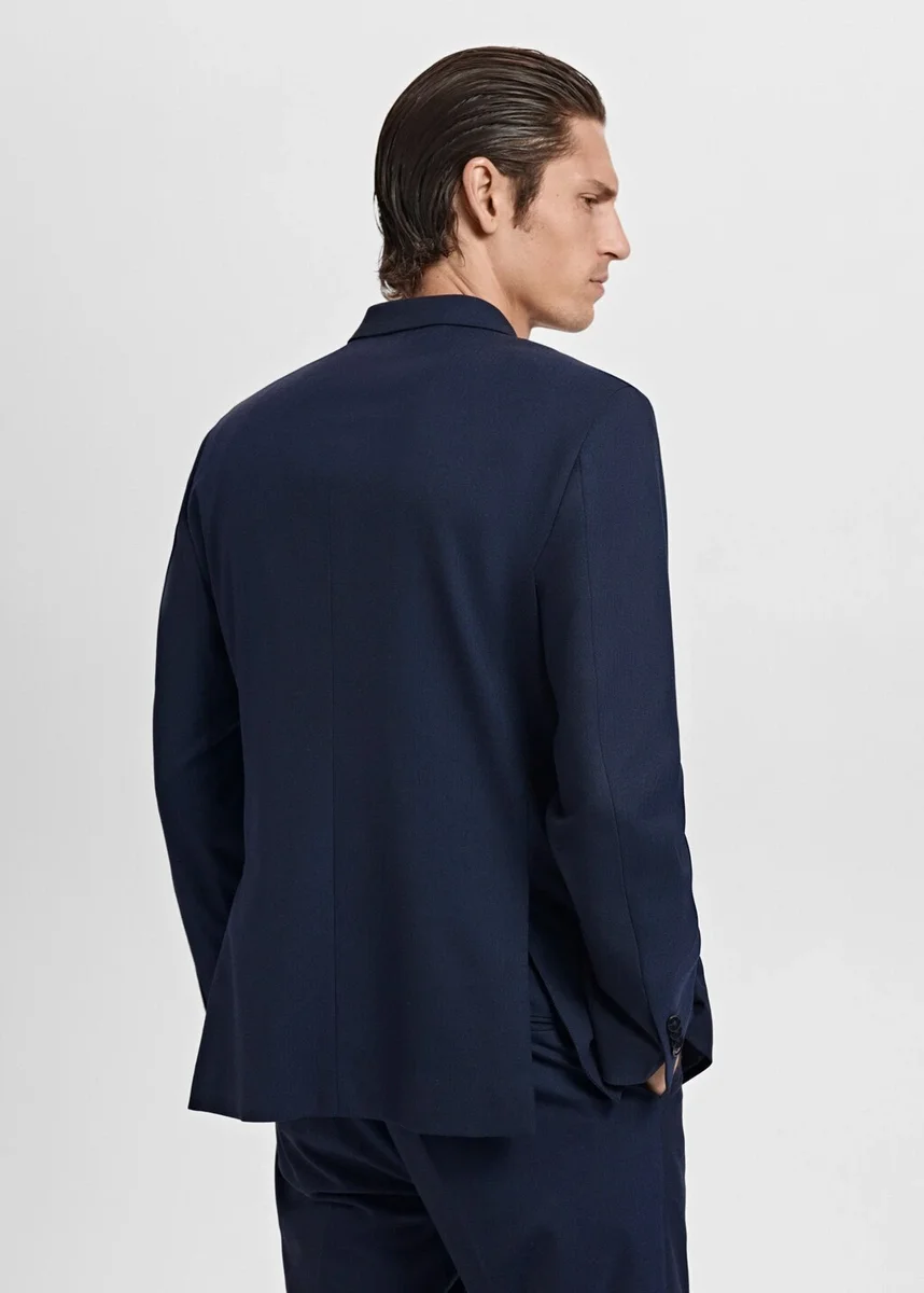 Úzký střih. Kolekce Tailoring. Klopový límec a knoflíková dírka. Design s dvouřadým zapínáním vpředu. Náprsní kapsa s lemováním. Dvě boční kapsy s klopou a lemováním. Manžety s knoflíky. Boční rozparek v dolním lemu.