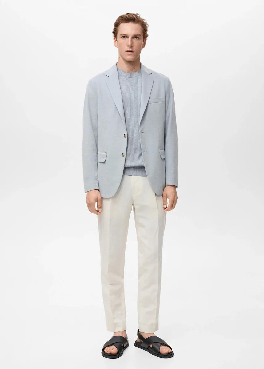 Kolekce Tailoring. Slim fit. Bavlněná směsová tkanina. Klopový límec. Zapínání na knoflíky vpředu. Náprsní kapsa. Dvě kapsy s klopami vpředu. Manžety na knoflíky. Dva rozparky na zadním lemu. Vnitřní kapsa. Zapínání na knoflíky