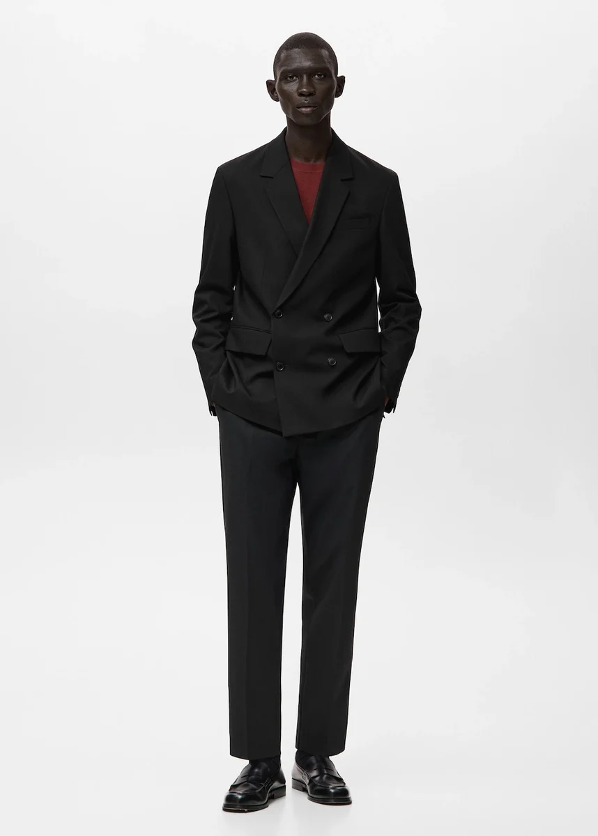 Kolekce Tailoring. Regular fit. Klopový límec a knoflíková dírka. Náprsní kapsa. Dvě kapsy s klopami na přední straně. Vnitřní kapsa. Dvojitý rozparek vzadu. Manžety na knoflíky. Zapínání na křížené knoflíky vpředu.