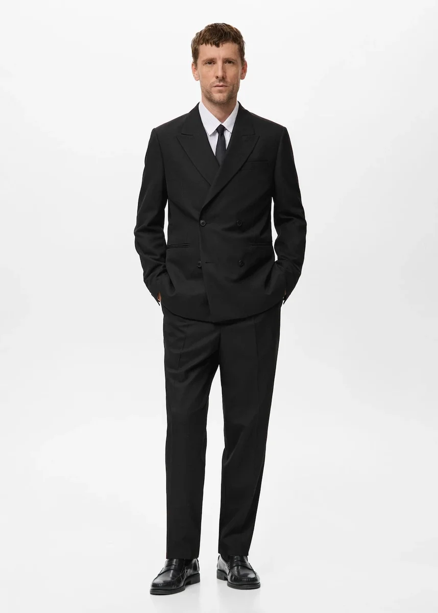 Kolekce Party. Regular fit. Směsová vlna. Přesahující střih. Klopový límec a knoflíková dírka. Zapínání vpředu na překřížené knoflíky. Náprsní kapsa s lemováním. Dvě kapsy s lemováním vpředu. Dvojitý zadní rozparek na lemu. Vnitřní podšívka. Manžety s knoflíky.