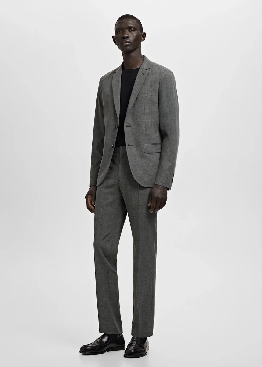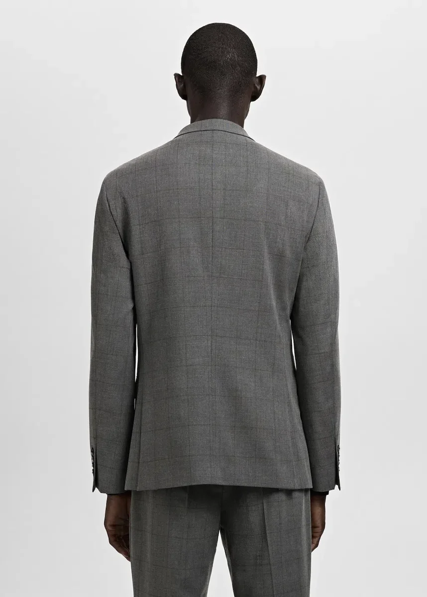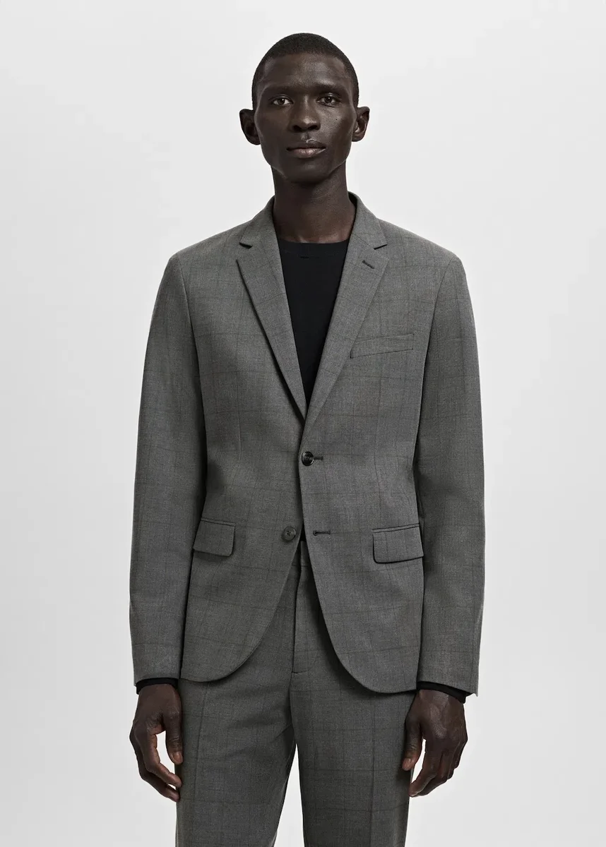 Super slim fit. Klopový límec a knoflíková dírka. Náprsní kapsa. Dvě kapsy s klopami na přední straně. Vnitřní kapsa. Vnitřní podšívka. Dlouhé rukávy s manžetami na knoflíky.