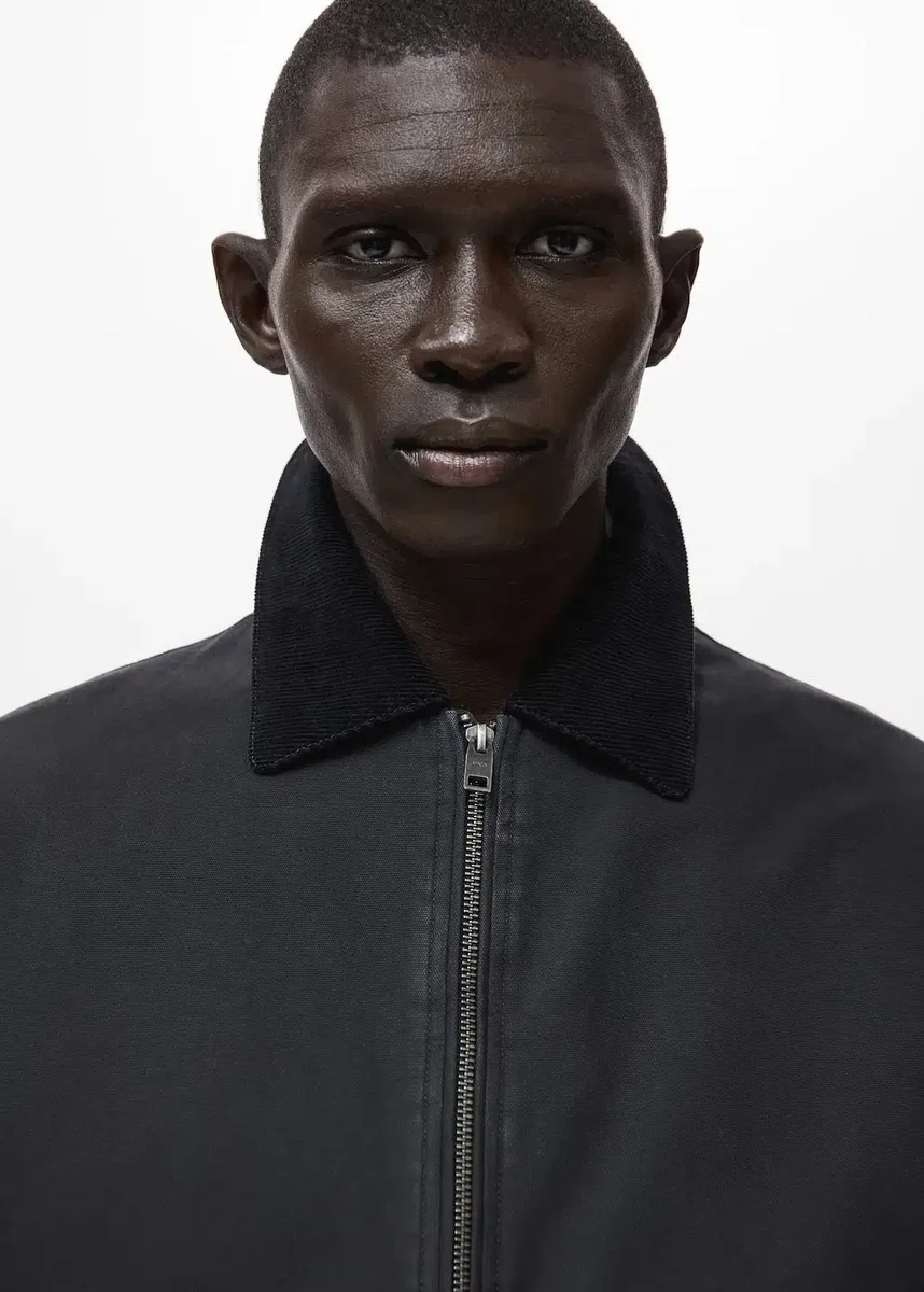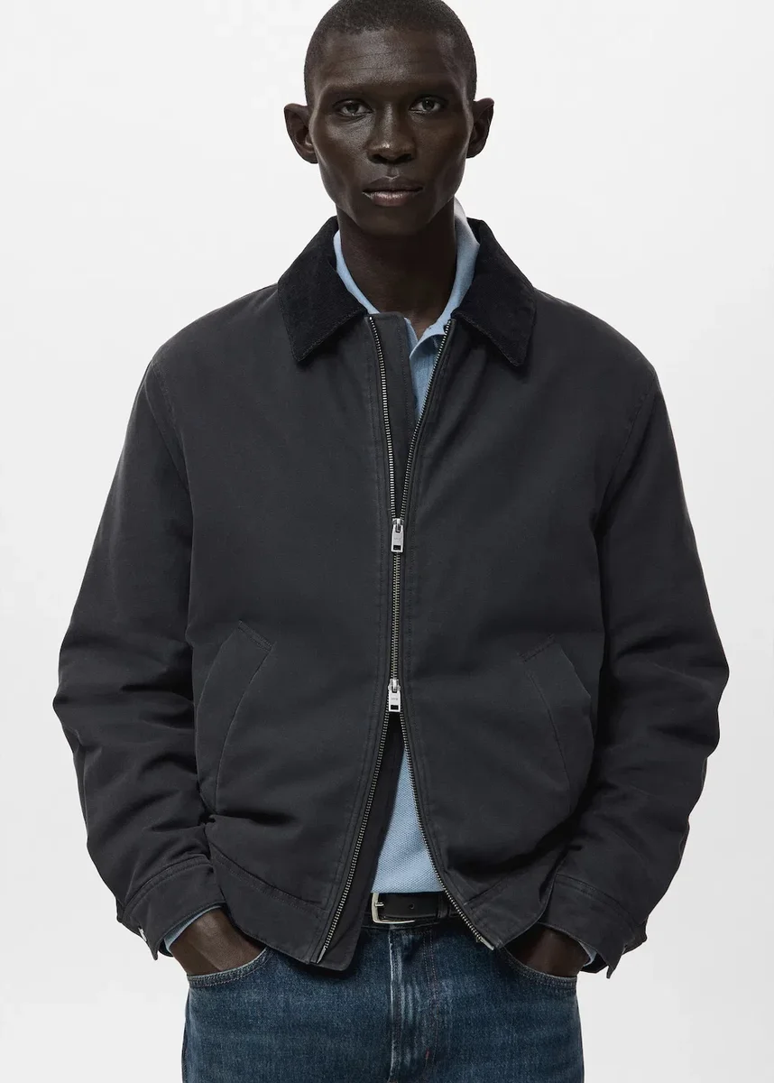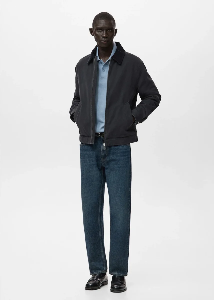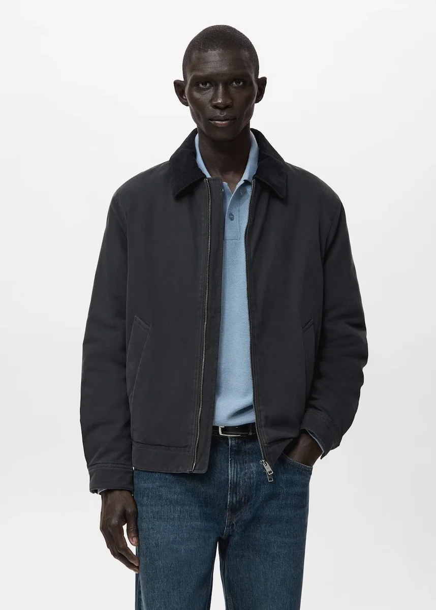 Regular fit. Bavlněná džínovina. Prošívaný design. Manžeta z manšestru. Dvě boční kapsy s lemováním. Dlouhé rukávy s manžetami na knoflíky. Dvoucestný zip