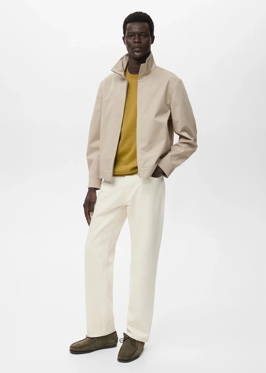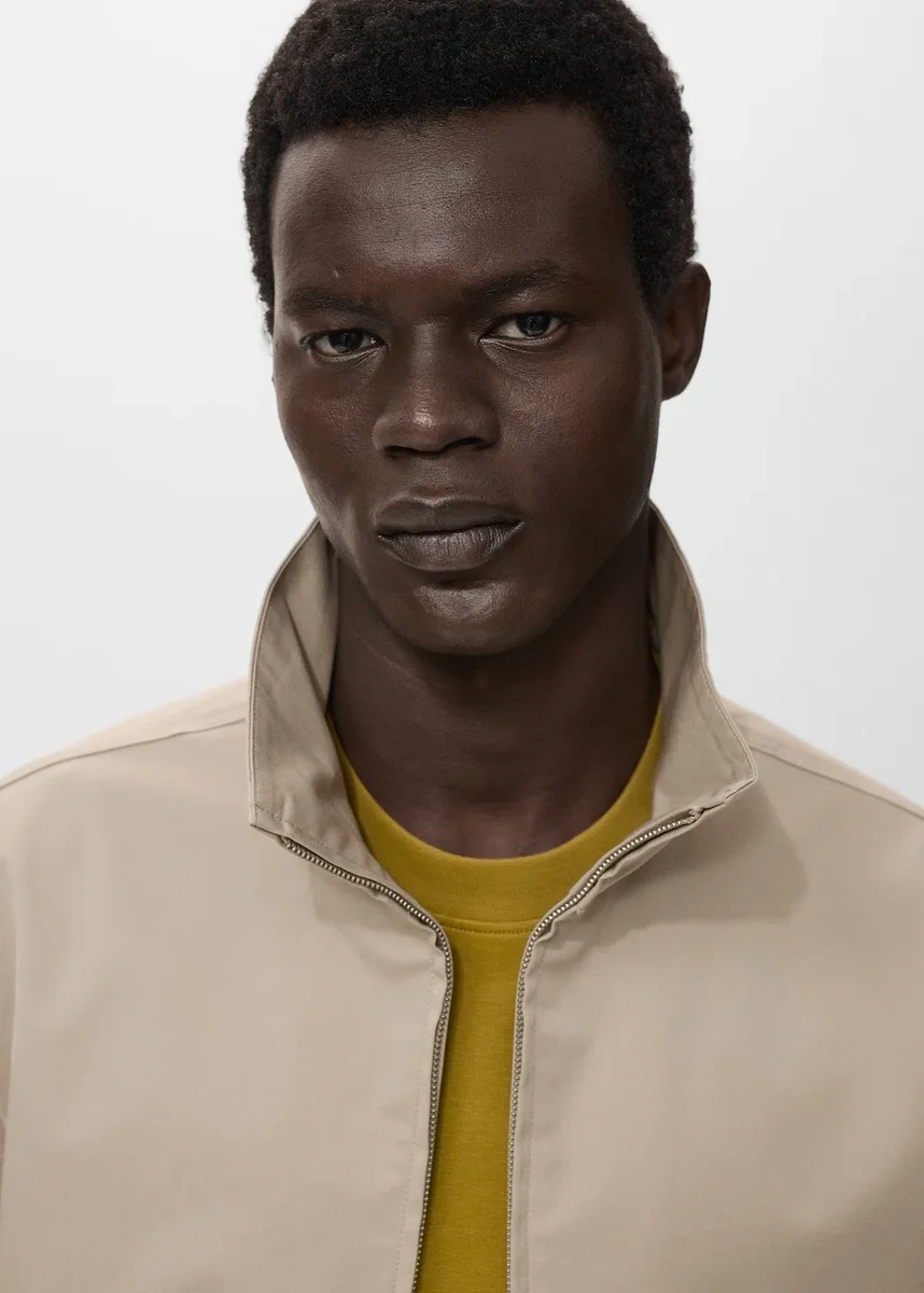 Bavlněná směsová tkanina. Rovný střih. Límec s klopami. Dvě boční kapsy s paspulkou. Dlouhé rukávy. Manžety na knoflíky. Zapínání na zip vpředu. Nastavitelný lem s knoflíkem.
