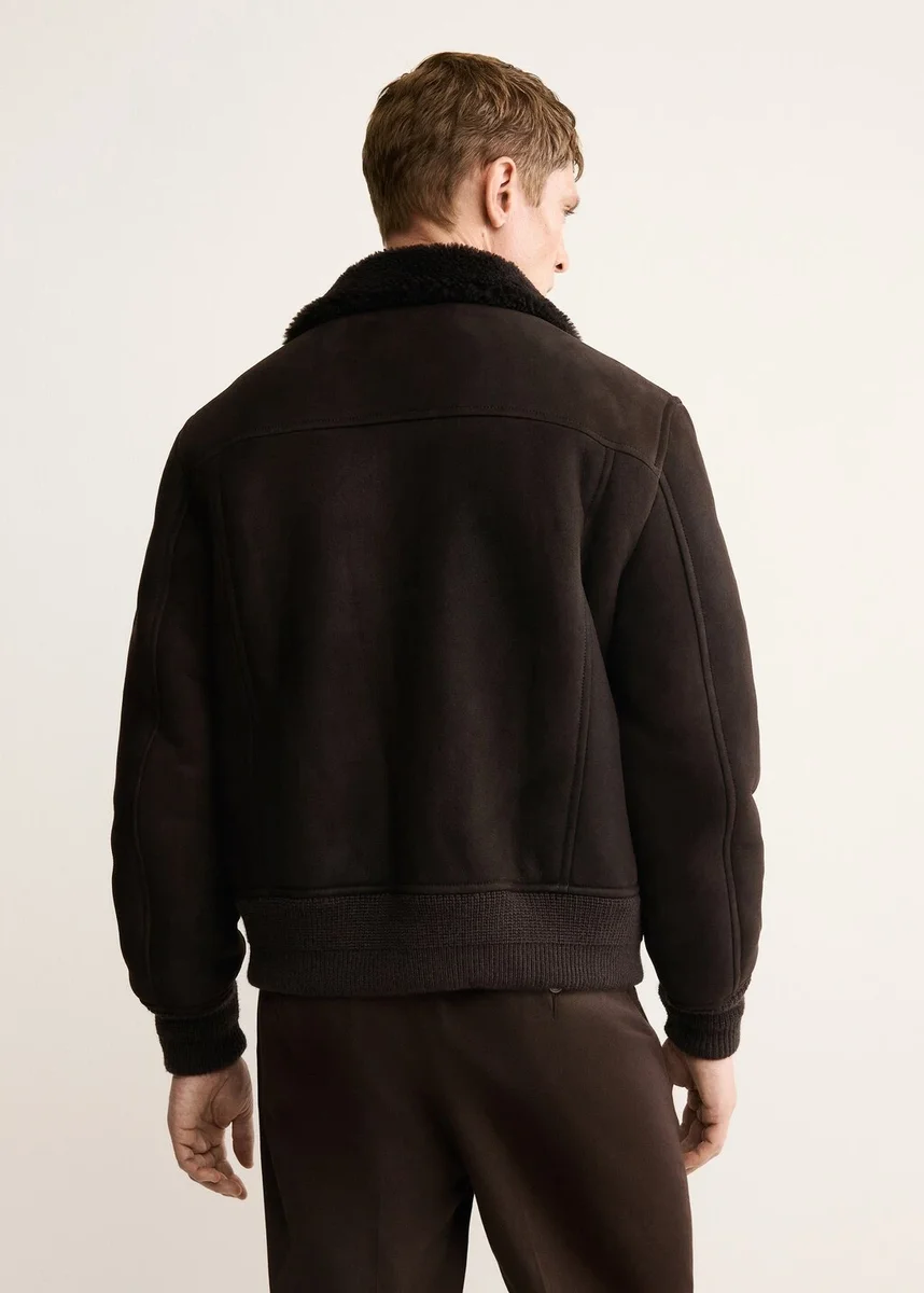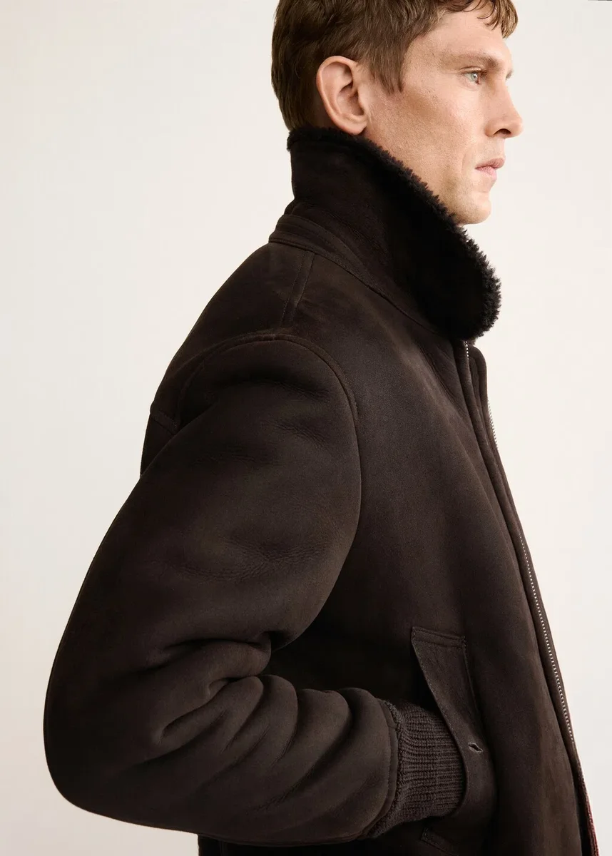 100 % ovčí kůže | Vyrobeno ve Španělsku. Podšívka z ovčí kůže se 100 % španělskou ovčí kůží. Semiš. Rovný střih. Dvě boční kapsy na knoflíky. Žebrované manžety a lem. Zapínání na zip vpředu.