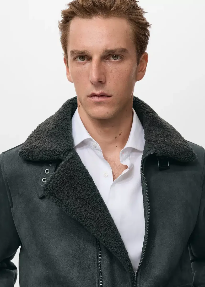 Umělá semišová kůže. Rovný střih. Vnitřek z umělé ovčí kůže. Dvě přední kapsy. Zapínání na zip vpředu.