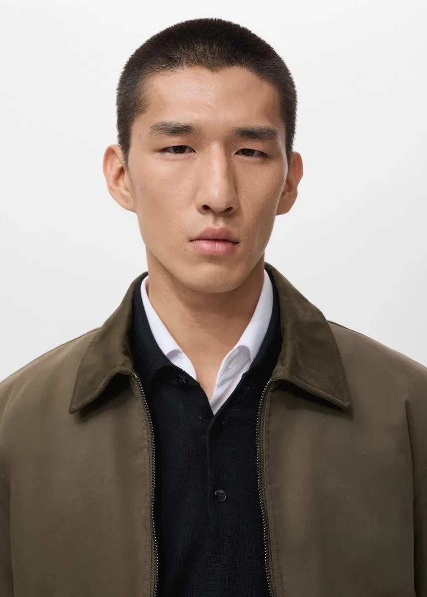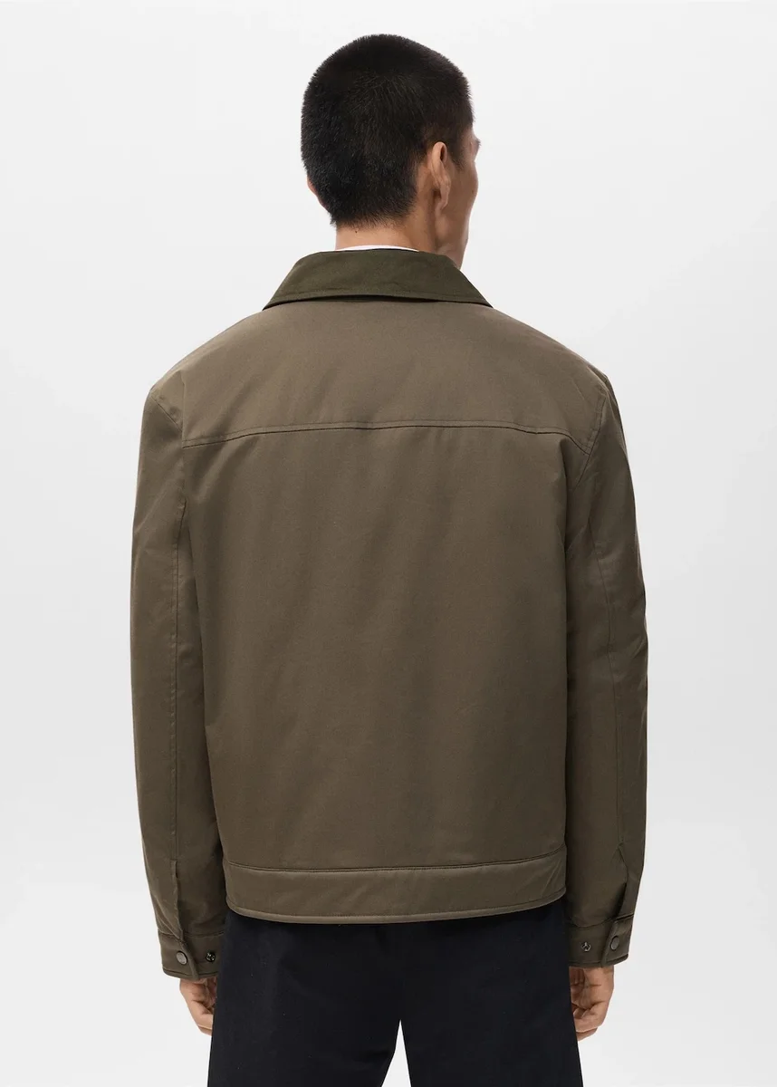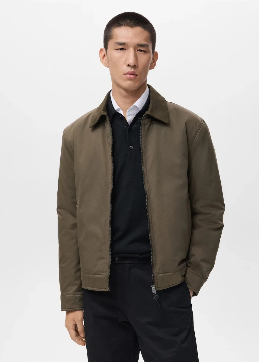 Vodoodpudivý: Technická vodoodpudivá tkanina. Khaki je exkluzivně k dostání online. Bavlněná směsová tkanina. Rovný střih. Košilový límec. Boční kapsy. Vnitřní kapsa. Prošívaná vnitřní podšívka. Dlouhé rukávy s manžetami na knoflíky. Zapínání na zip vpředu.