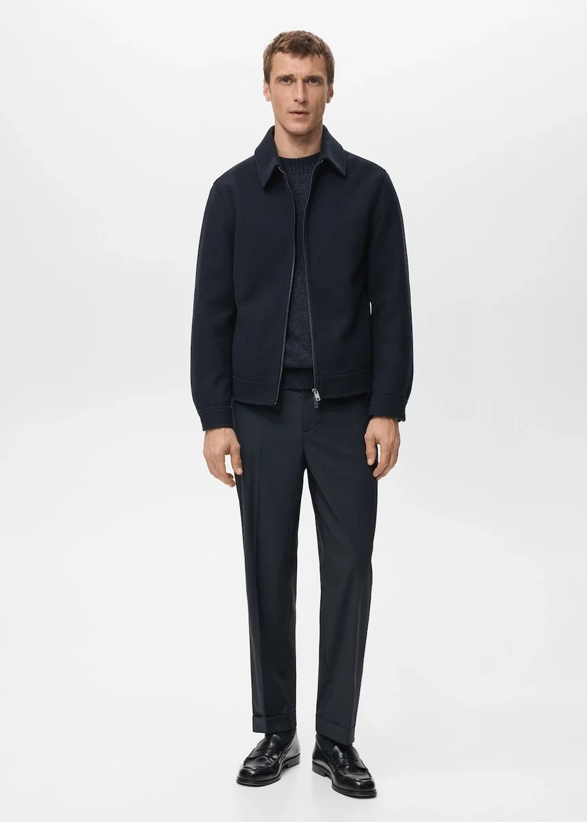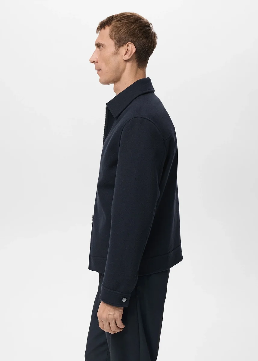 Regular fit. Košilový límec. Dvě boční kapsy. Dlouhé rukávy s manžetami na knoflíky. Rovný spodní lem. Dvoucestný zip.