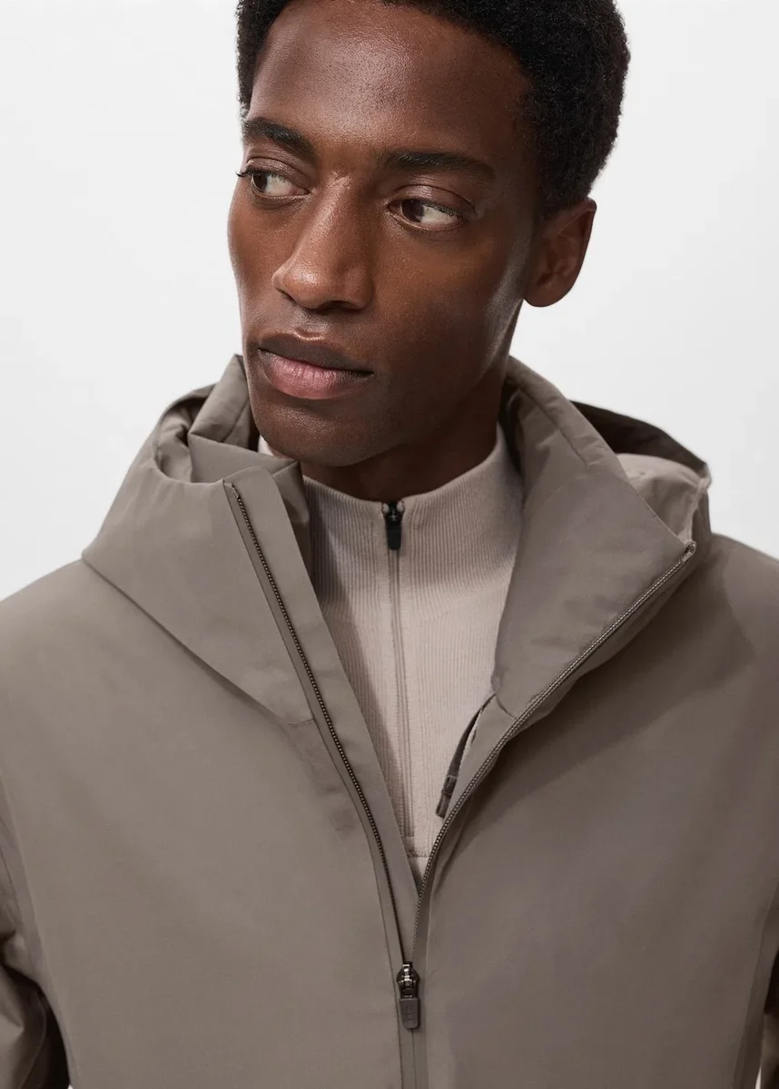 Kolekce Performance. Rovný střih. Větruodolný: Tento odolný materiál nabízí ochranu před větrem pro větší pohodlí při outdoorových aktivitách. Vodoodpudivý: Technická vodoodpudivá tkanina. THERMOLITE®: tkanina, která díky své technologii vláken nabízí tepelnou izolaci a prodyšnost. S kapucí. Zapínání na zip vpředu. Dvě boční kapsy se zapínáním na zip. Vnitřní kapsa se zapínáním na zip. Sbalitelný: Oděv má vnitřní kapsu pro vlastní uložení. PERFORMANCE: Kolekce oděvů vyrobených z technických vláken. Tato kolekce nabízí širokou škálu pokročilých funkcí, jako jsou bi-stretchové tkaniny a rychleschnoucí, snadno žehlitelné, termoregulační, prodyšné nebo vodoodpudivé vlastnosti, rozdělené do tří obecných kategorií: Termoregulační, Funkční a Komfortní