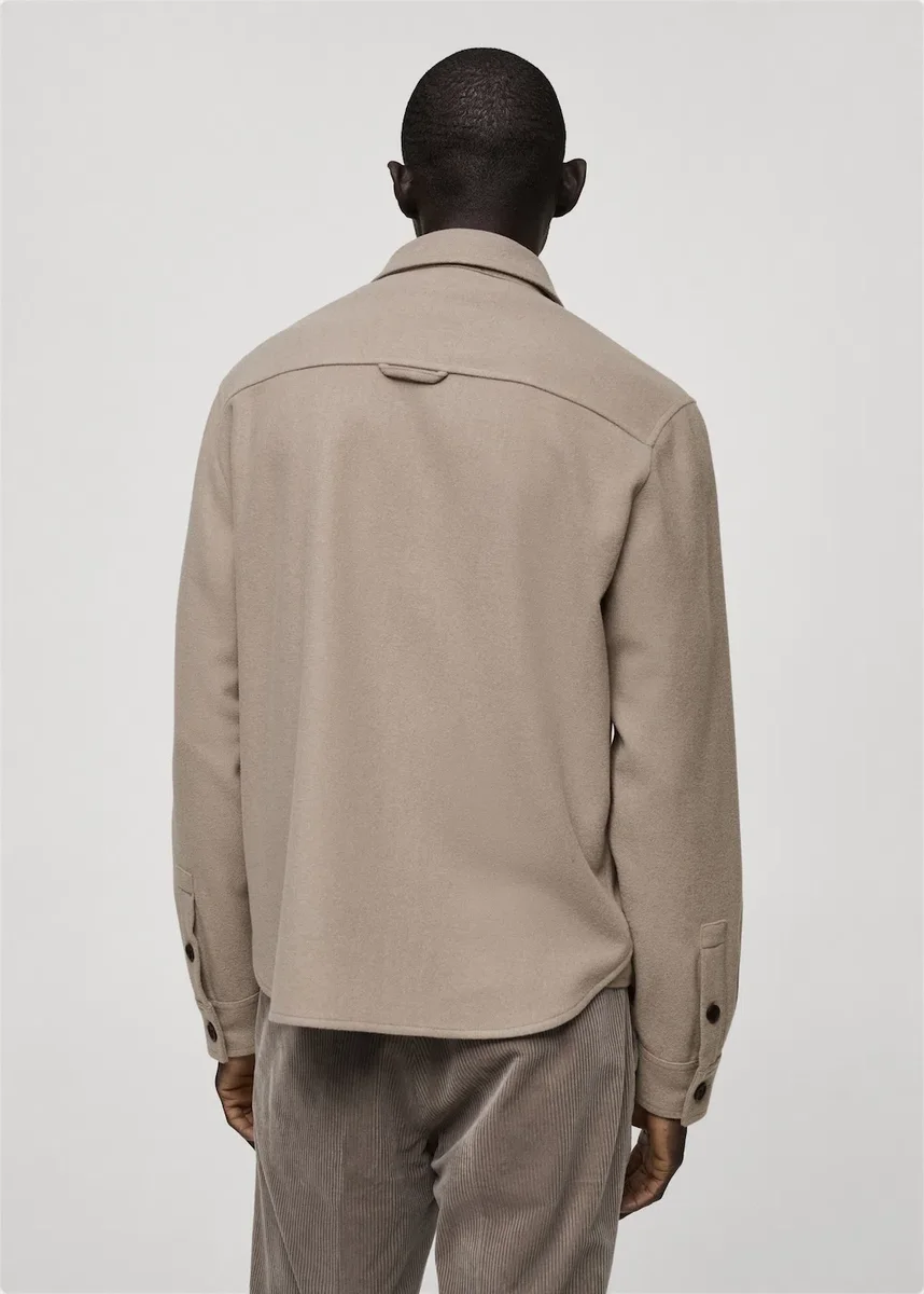 Lehká tkanina. Regular fit. Směsová vlna. Košilový límec. Zapínání na knoflíky vpředu. Dlouhé rukávy s knoflíky. Dvě našité kapsy s klopami na hrudi. Zaoblený spodní lem. Zapínání vpředu. Standardní střih. Dlouhé rukávy.