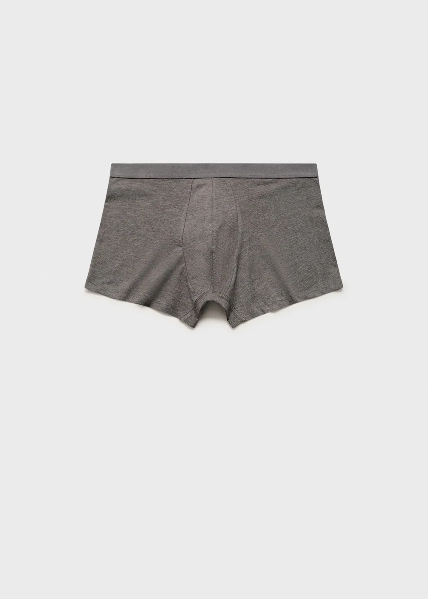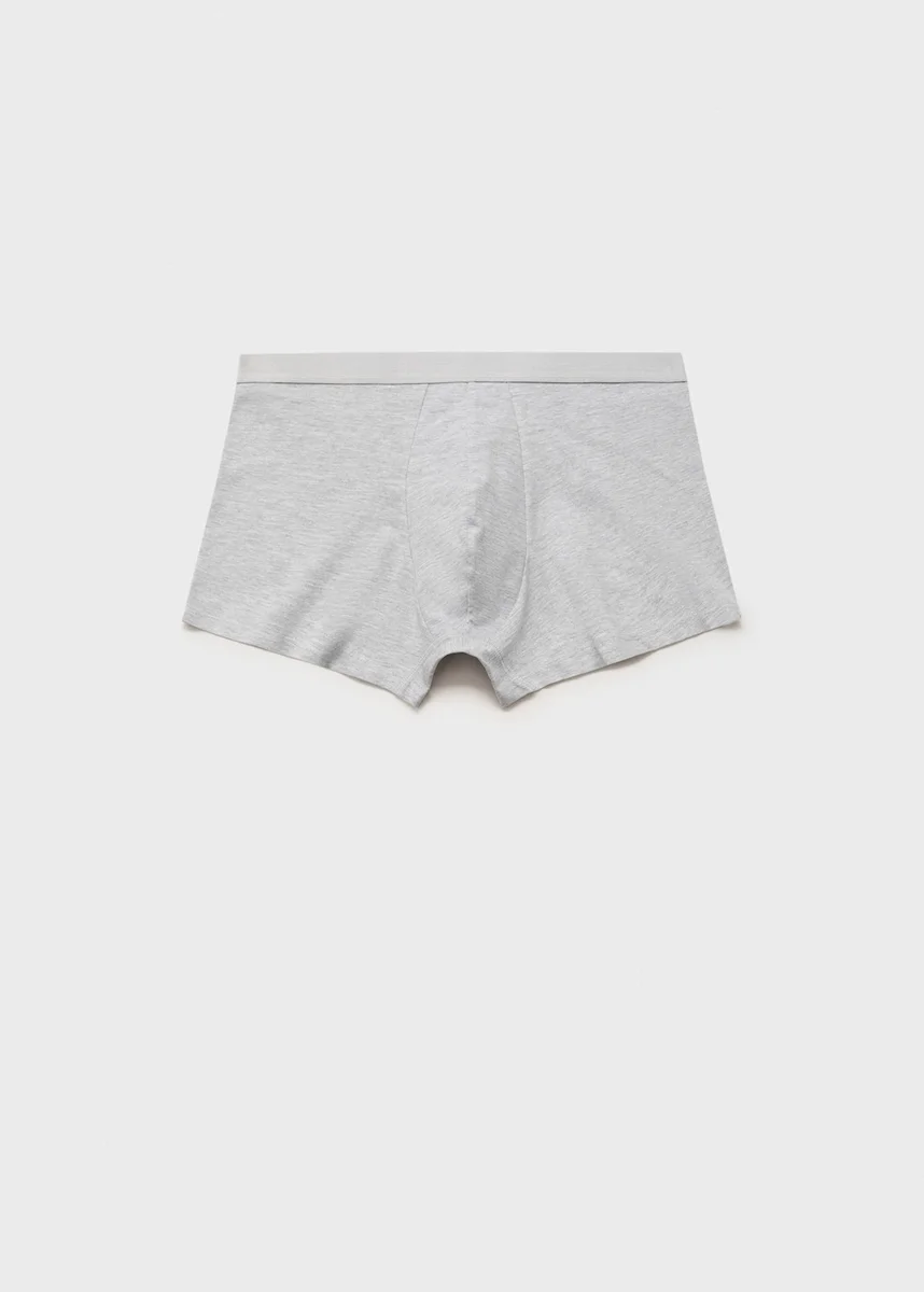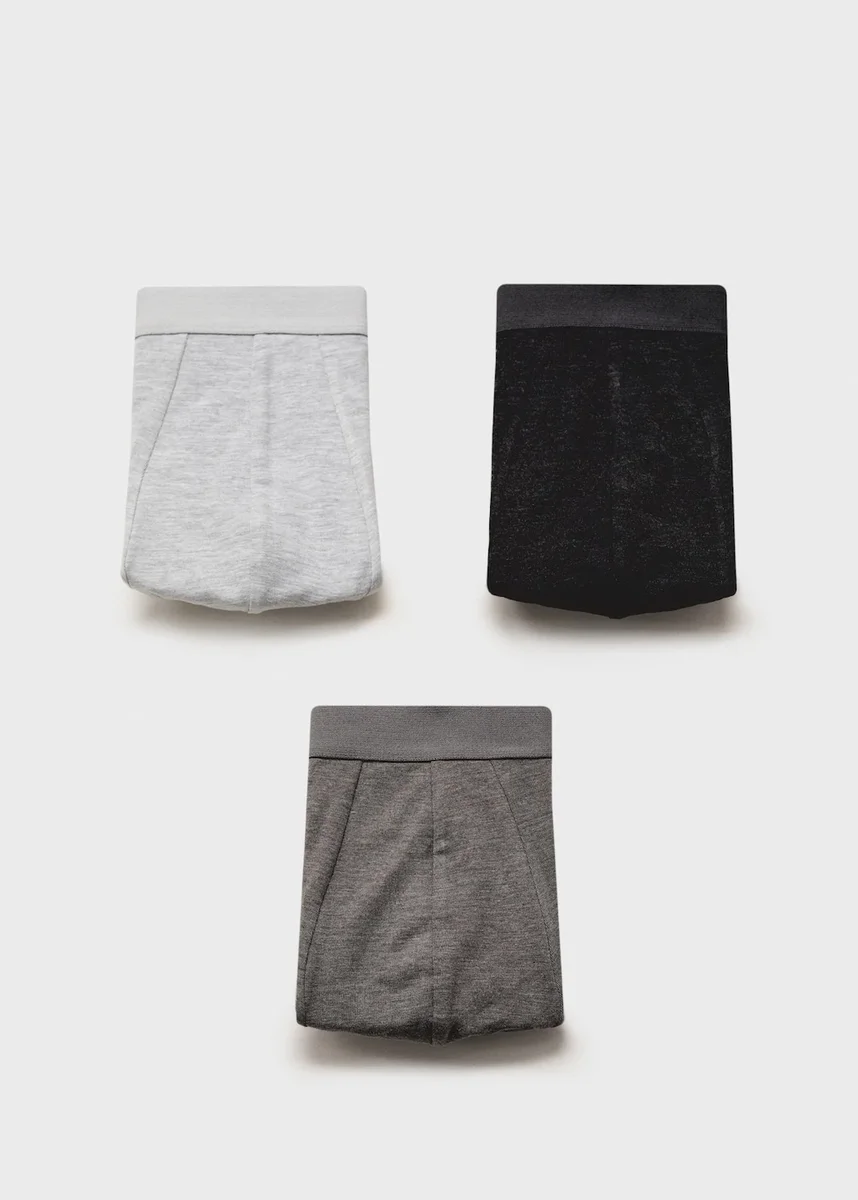 Balení po 3 kusech. Pružná bavlněná tkanina. Tři různé odstíny šedé. Typ boxerky. Elastický pas.