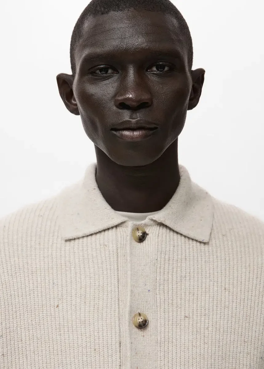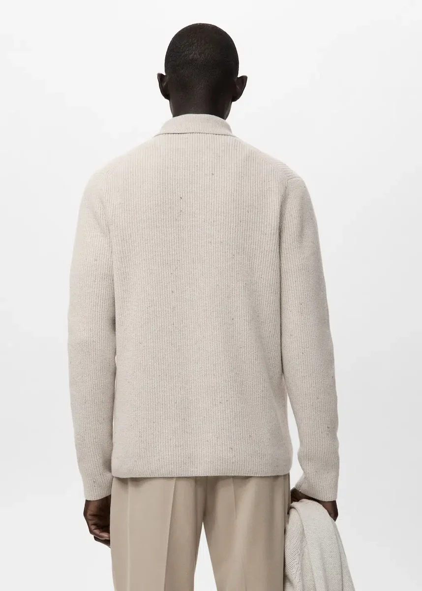 Exkluzivně online. Směsová vlna. Žebrovaný design. Regular fit. Polo límec. Dlouhé rukávy. Zapínání na knoflíky vpředu.