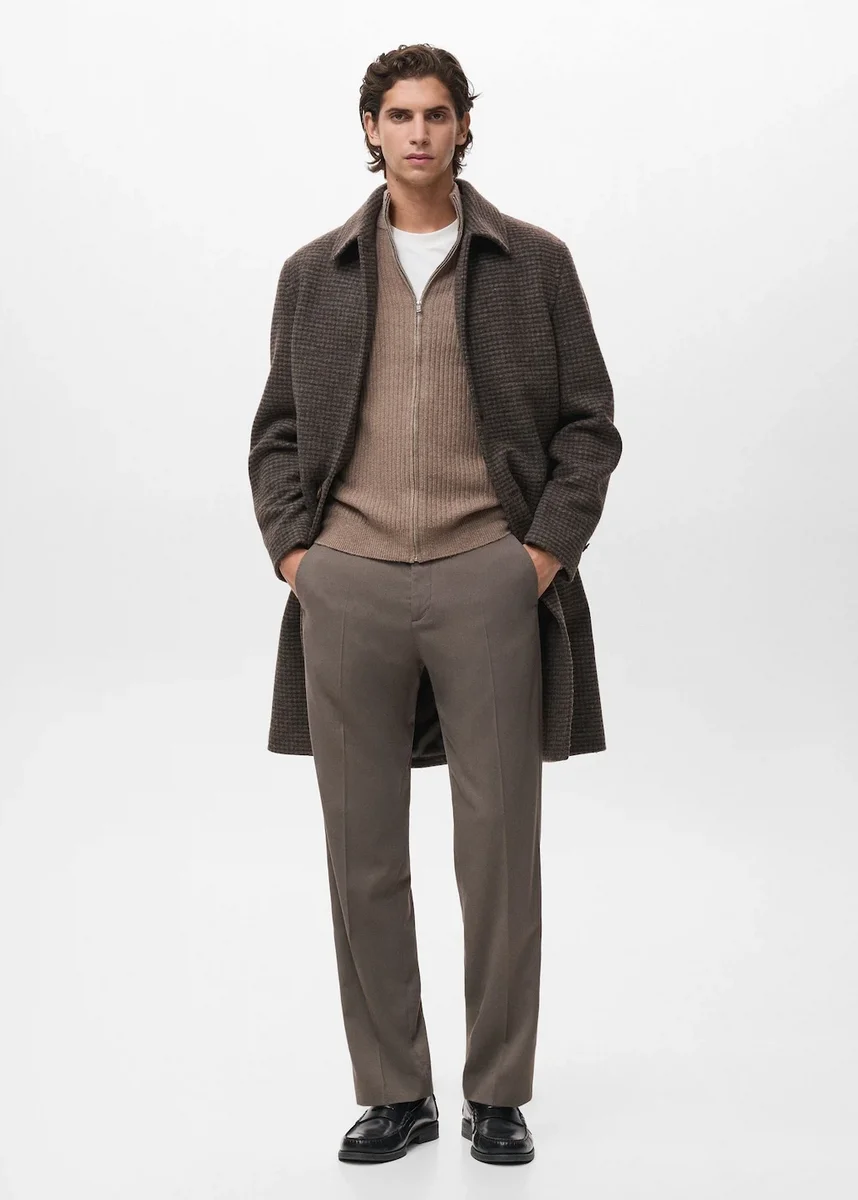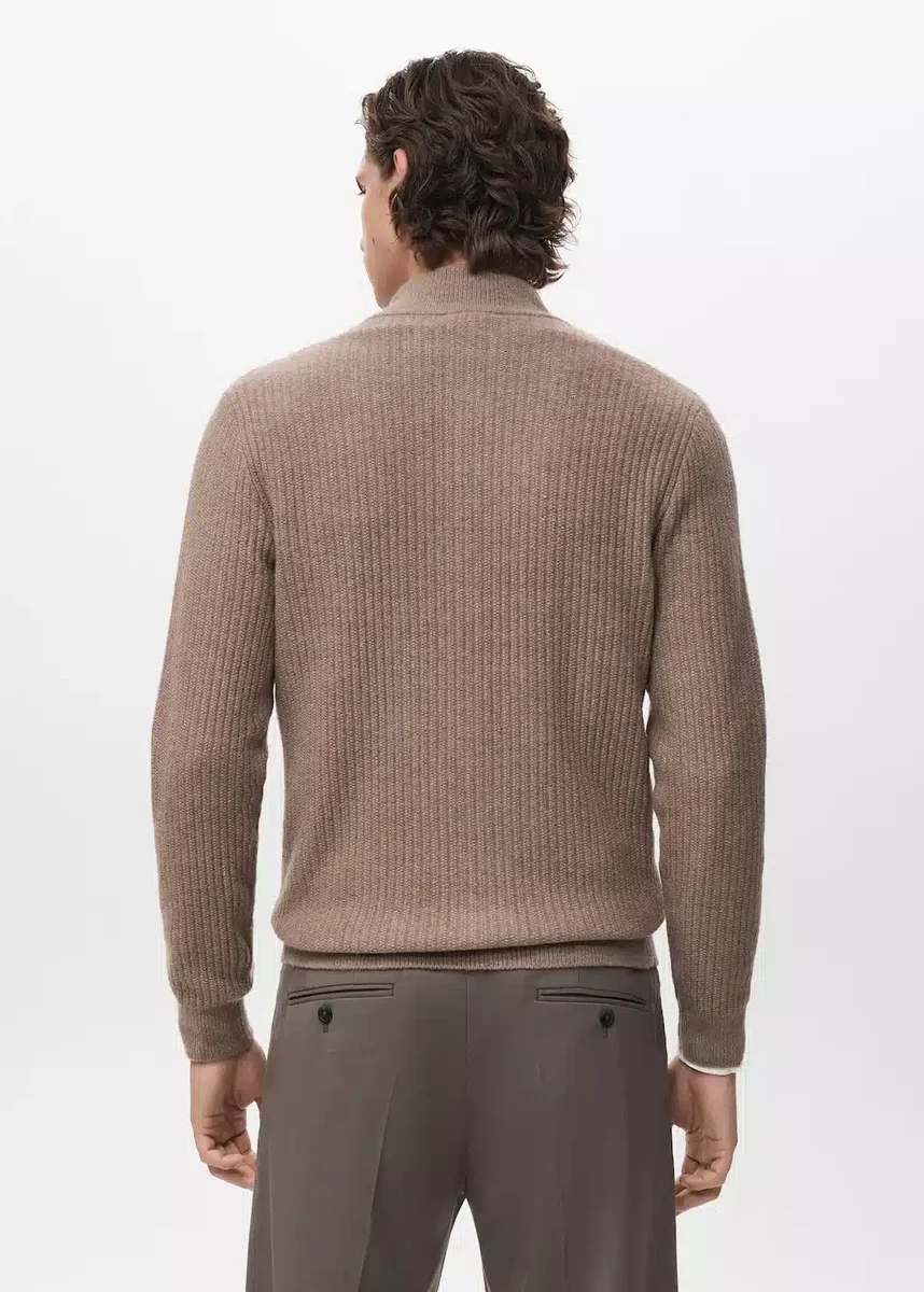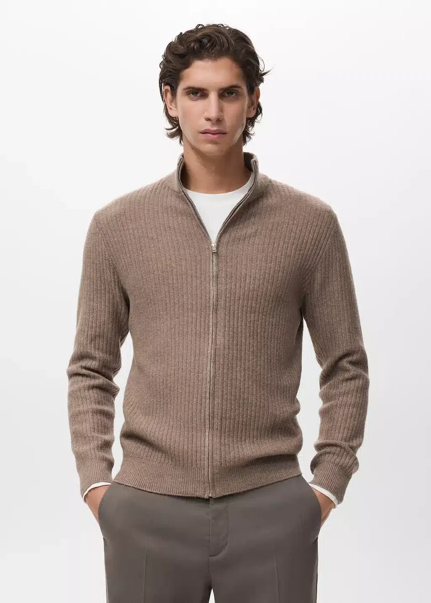 Rovný střih. Pletená látka. Pletený vzor. Stojací límec. Dlouhé rukávy s elastickými manžetami. Žebrovaný lem na rukávech a spodním okraji. Zapínání na zip vpředu.