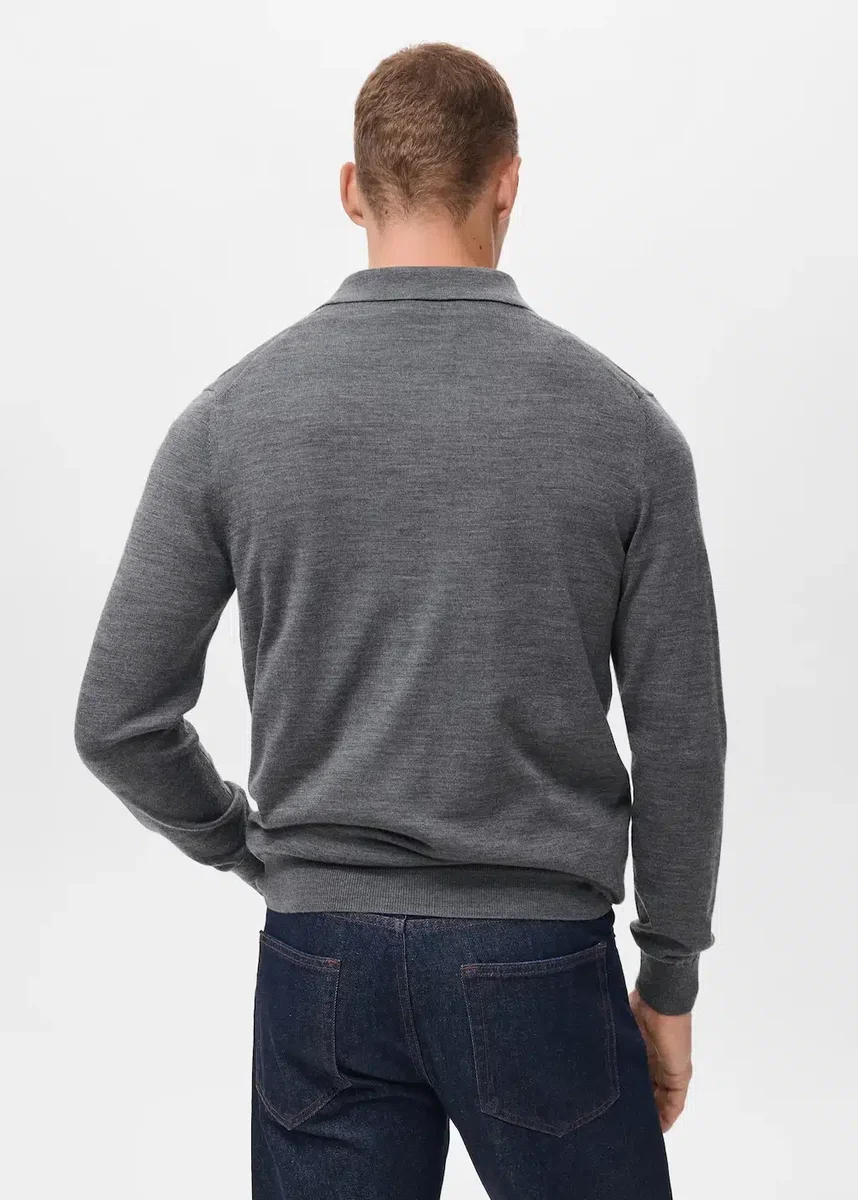 Střih Regular. 100% merino vlna. Jemný úplet. Polo límec se zapínáním na knoflíky. Dlouhé rukávy. Nezačištěné rukávy. Elastické manžety.