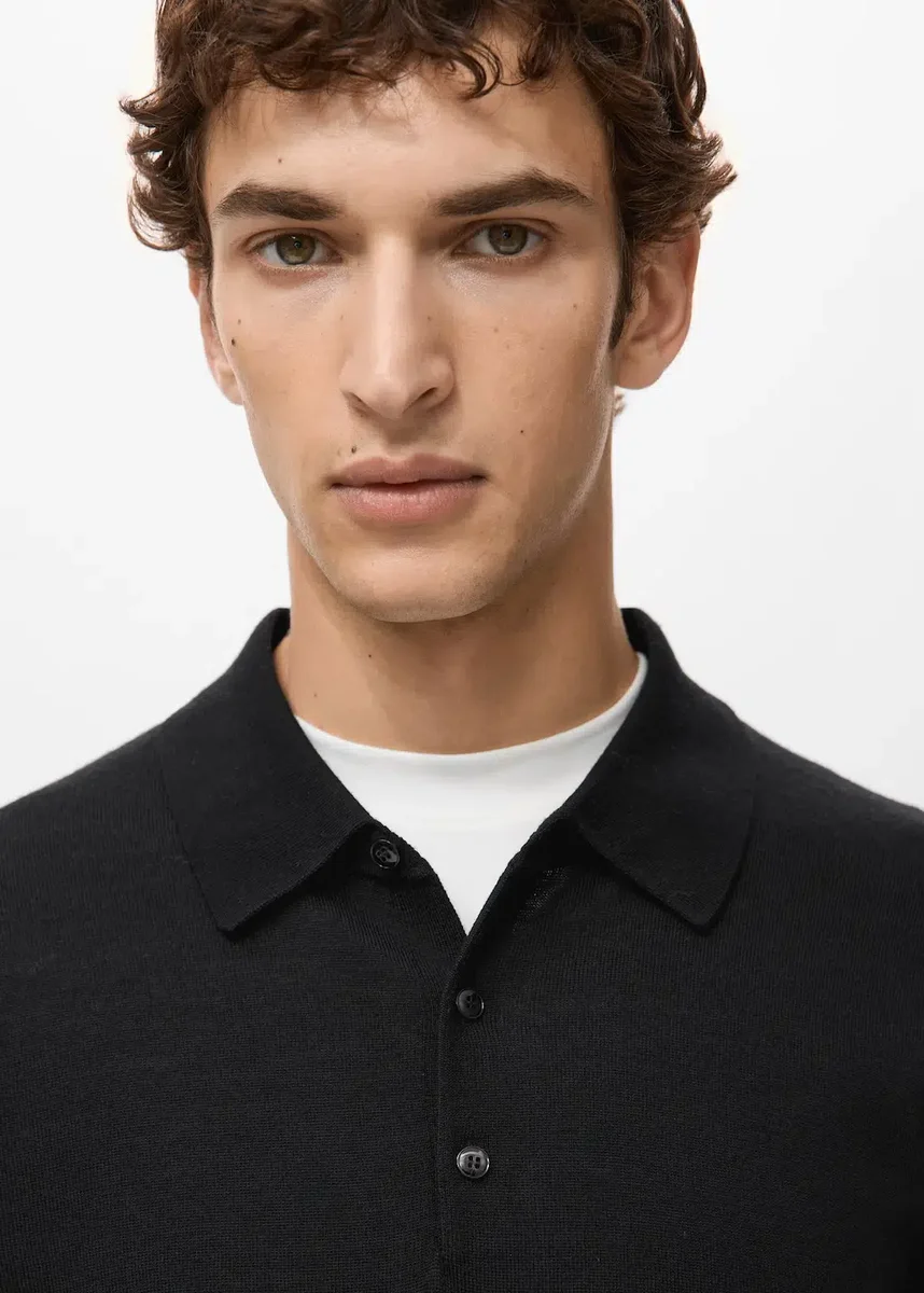 Regular fit. 100 % merino vlna. Jemná pletenina. Polo límec se zapínáním na knoflíky. Žebrované manžety a lem. Elastický rovný lem.