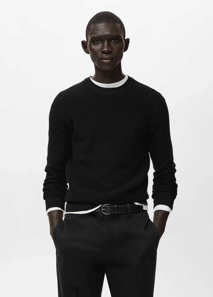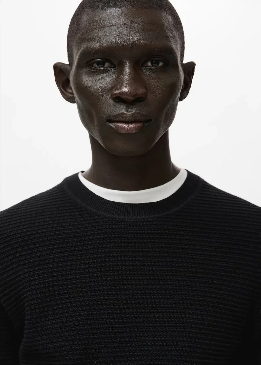 Regular fit. 100% bavlna. Strukturovaná pletenina. Kulatý výstřih. Dlouhé rukávy. Žebrovaný výstřih, manžety a lem.