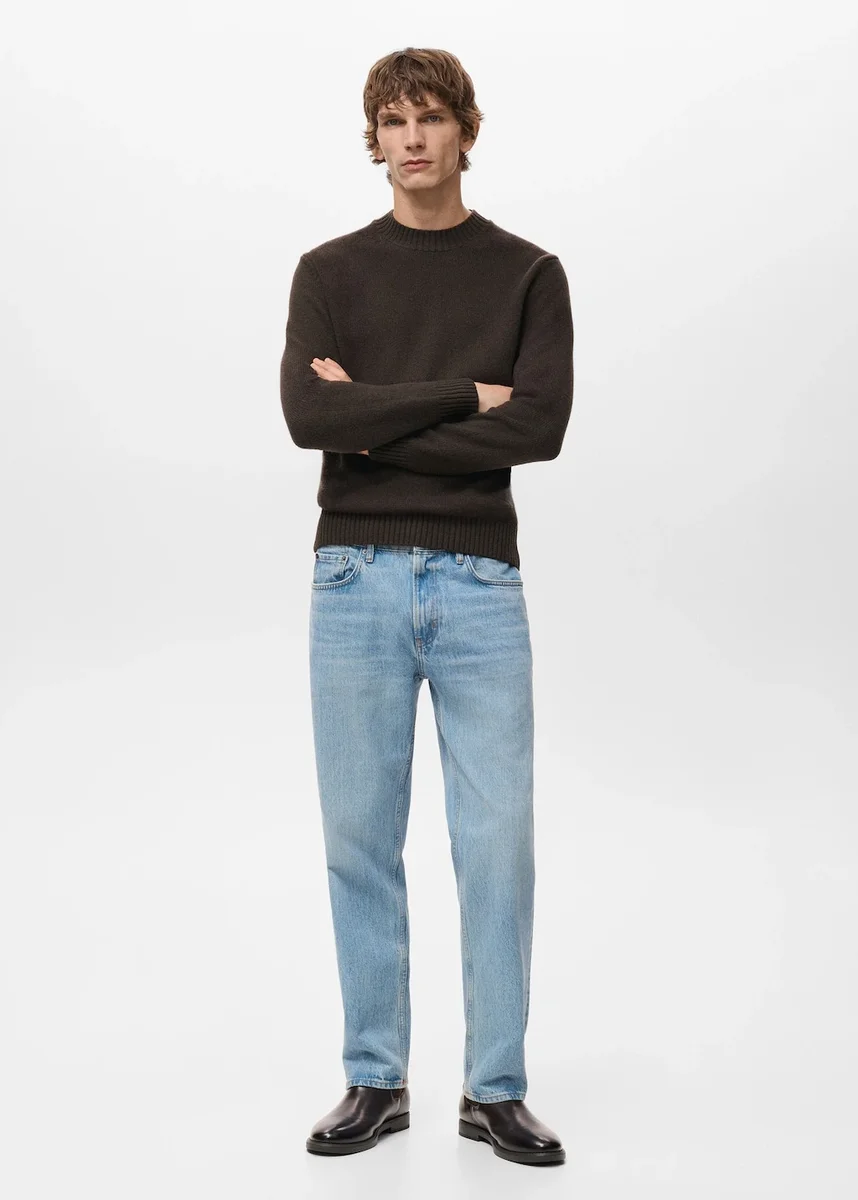 Regular fit. 100 % italská vlna. Silný úplet. Žebrovaný kulatý výstřih. Dlouhé rukávy. Žebrovaný výstřih, manžety a lem.