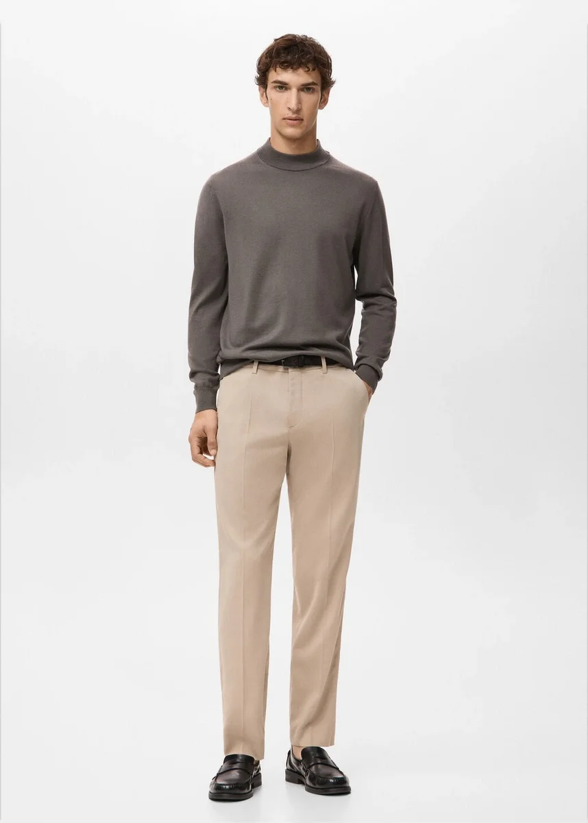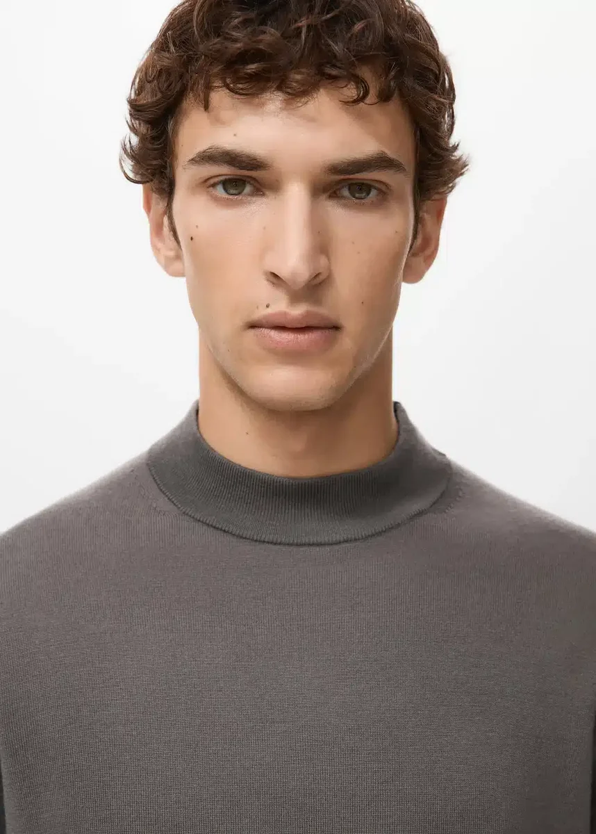 100 % vlněná tkanina. Jemně pletená tkanina. Rovný střih. Vysoký límec. Dlouhé rukávy s elastickými manžetami. Žebrované manžety a lem. Regular fit. 100 % merino vlna. Jemně pletená tkanina s mikrostrukturou. Elastické manžety. Rovný lem. Žebrovaný límec, rukávy a lem