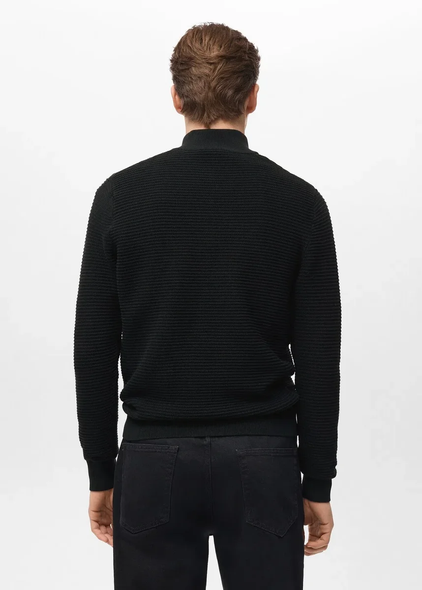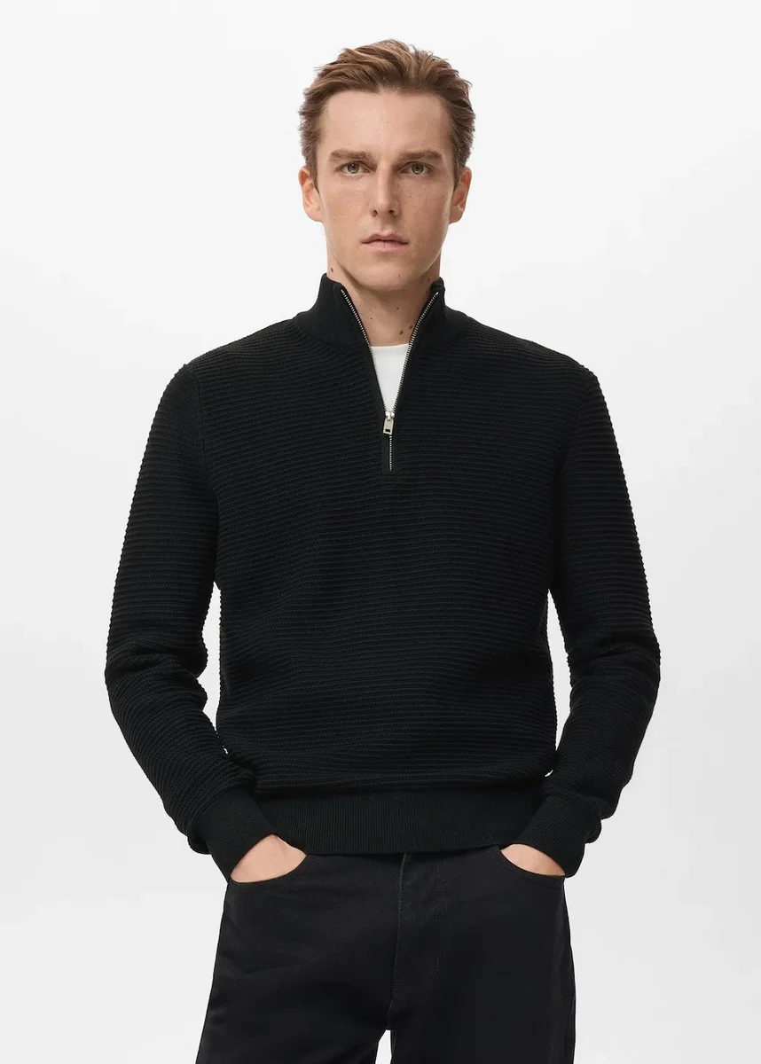 Béžová barva je k dispozici výhradně online. 100 % bavlna. Rovný střih. Horizontální pruhovaná struktura. Perkinsový výstřih se zipem. Žebrovaný límec, rukávy a lem