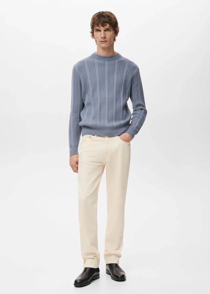 Regular fit. Kulatý výstřih. Kontrastní vzor. Žebrované lemy. Dlouhé rukávy s elastickými manžetami. Rovný lem s žebrovanými konci.