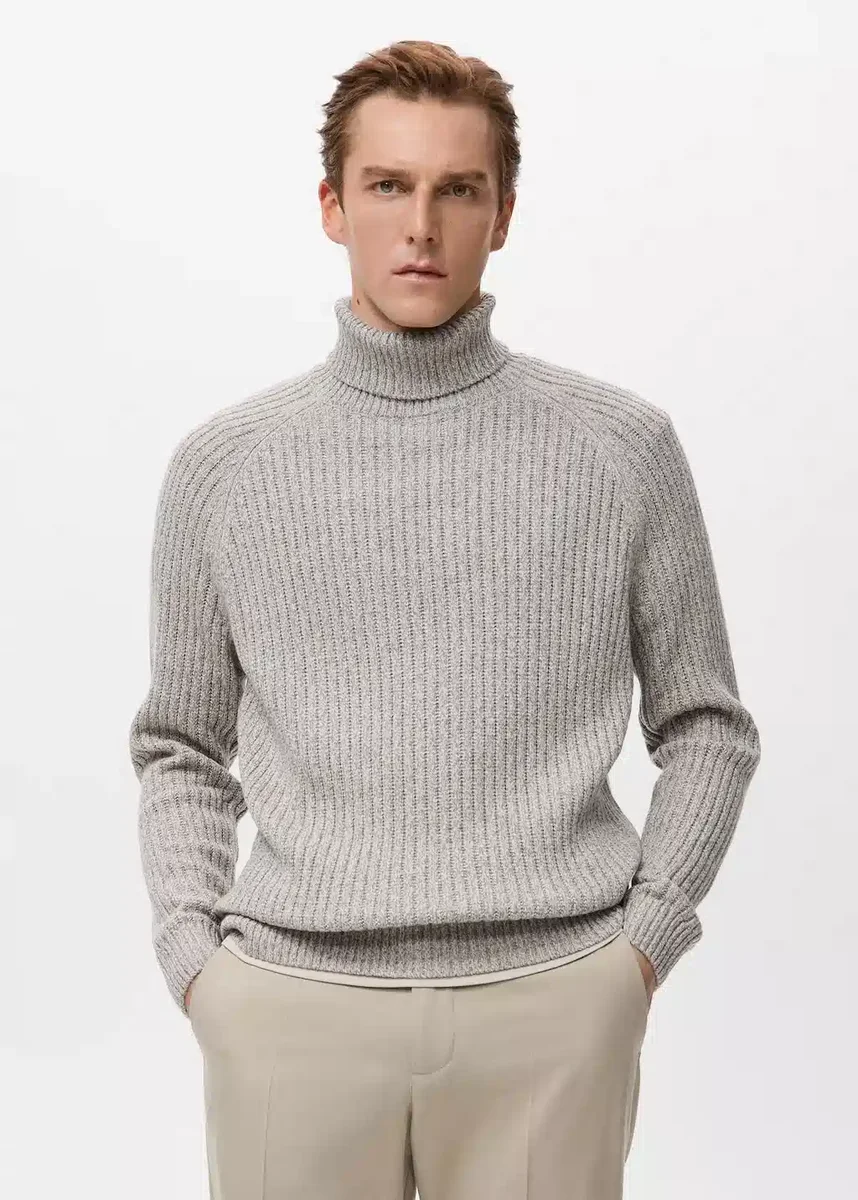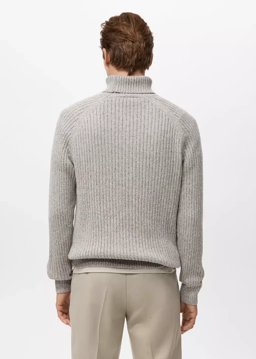 Směs vlny. Rovný střih. Kabelkový vzor. Rolák. Dlouhé rukávy s elastickými manžetami. Elastický rovný lem
