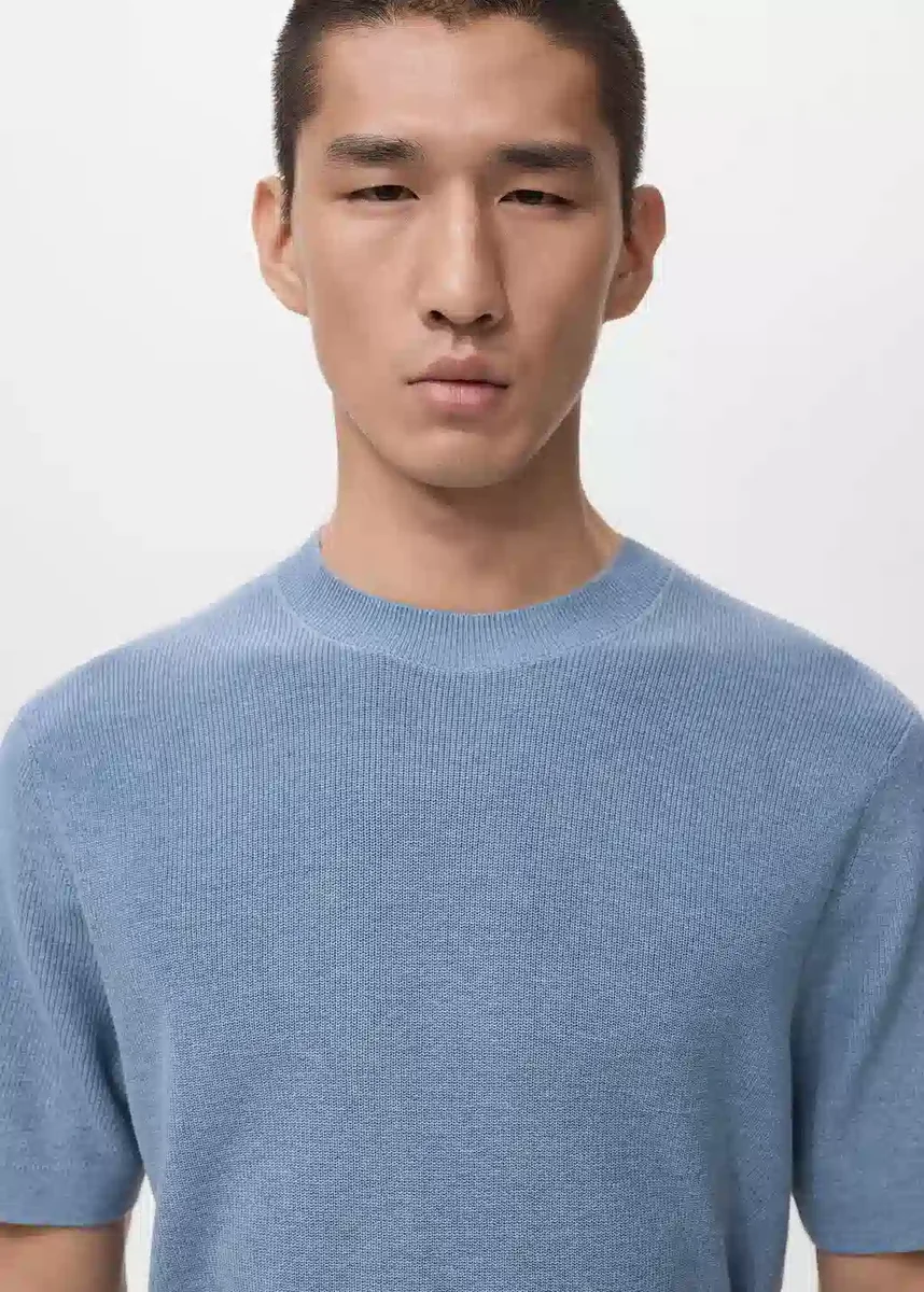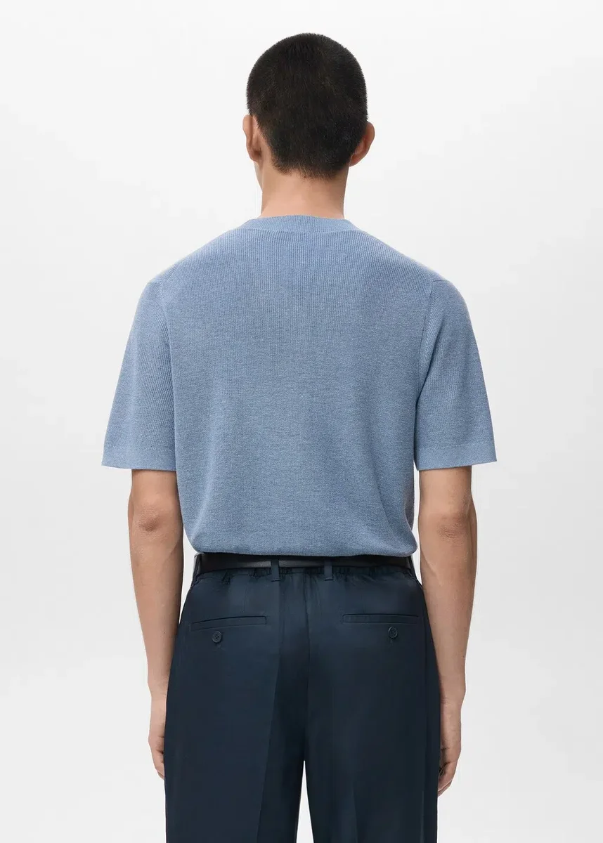 Regular fit. Směs bavlny a viskózy. Kulatý výstřih. Krátké rukávy. Žebrovaný límec, rukávy a lem.