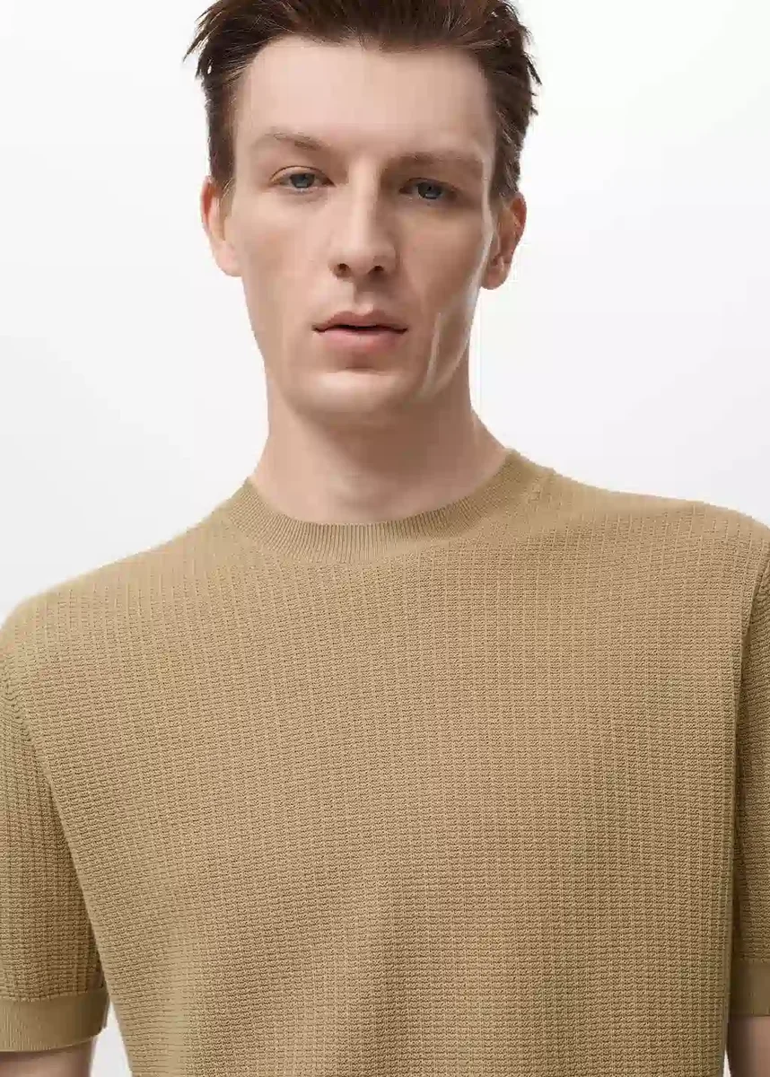 Standardní délka. Rovný střih. Kulatý límec. Jemná pletená struktura. Krátké rukávy. Propagační produkt