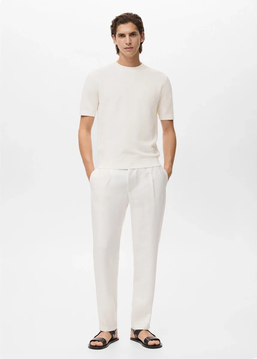 Standardní délka. Rovný střih. Kulatý límec. Jemná pletená struktura. Krátké rukávy. Propagační produkt
