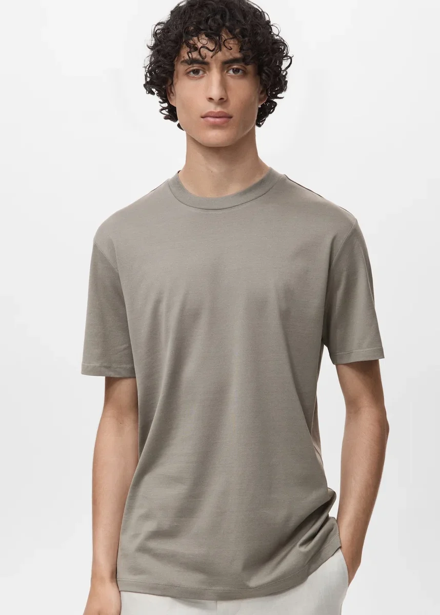 Regular fit. 100% mercerovaná bavlna. Kulatý výstřih. Krátký rukáv. Rovný lem