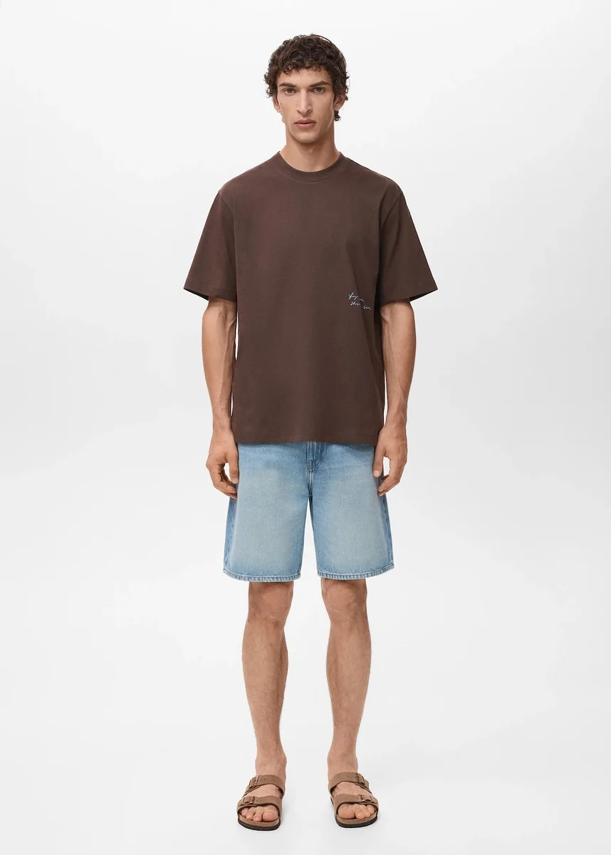 Tento oděv je vyroben ze 100% bavlny a nabízí volný střih s rovnou a volnou siluetou pro větší pohodlí. Na zadní straně má potisk a tištěný nápis. Model je vysoký 190 cm a má na sobě velikost M.