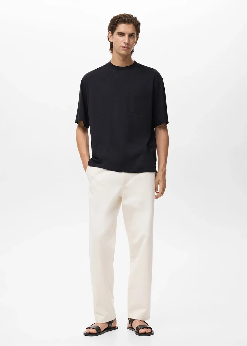 100% bavlna. Boxy střih. Kulatý výstřih s žebrovaným lemem. Krátké rukávy. Nášivková kapsa na hrudi. Rovný lem.