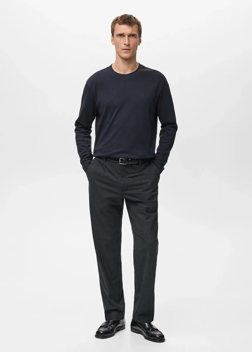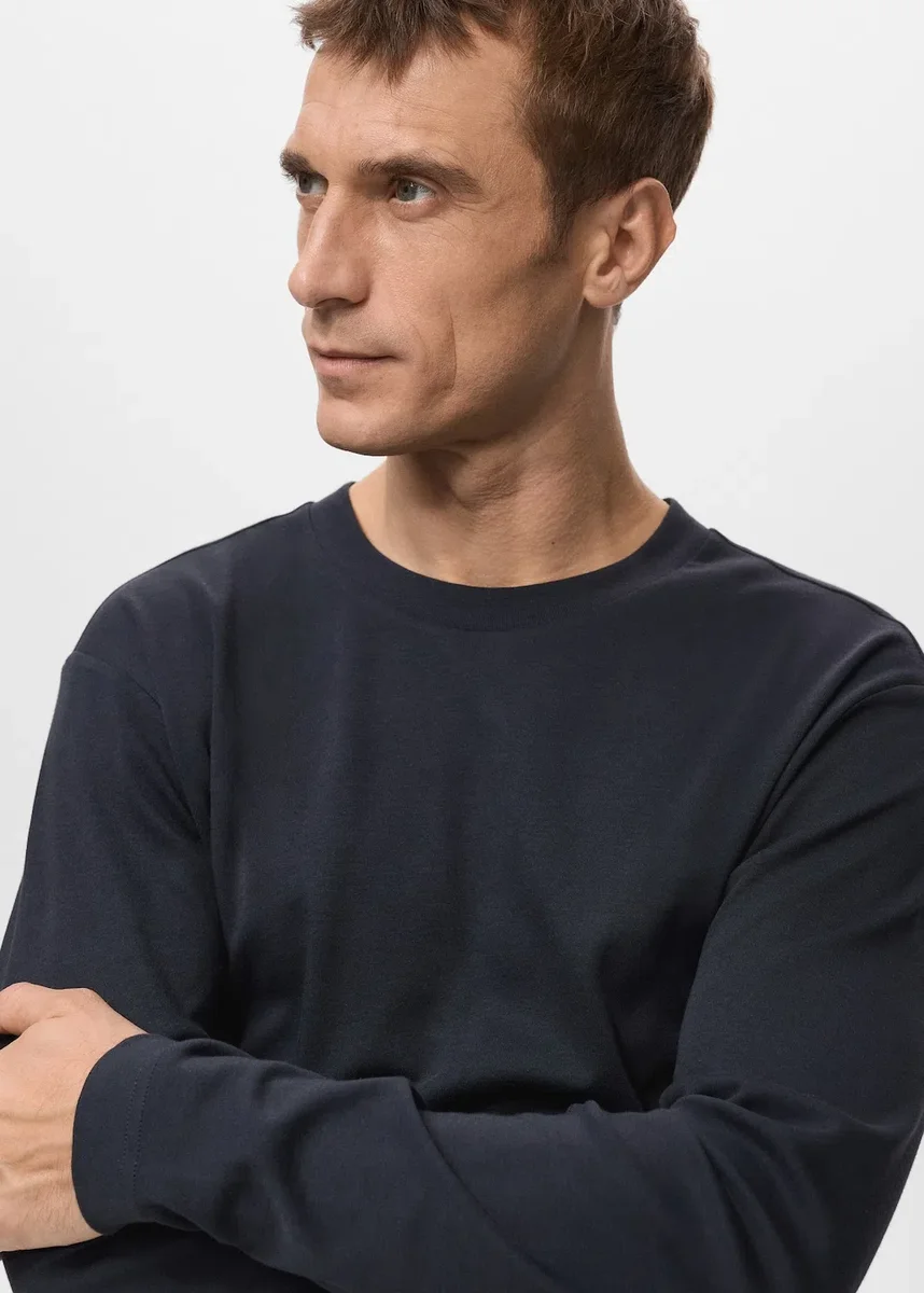 100% bavlna. Regular fit. Kulatý výstřih. Žebrovaný límec a manžety. Dlouhé rukávy. Rovný lem.